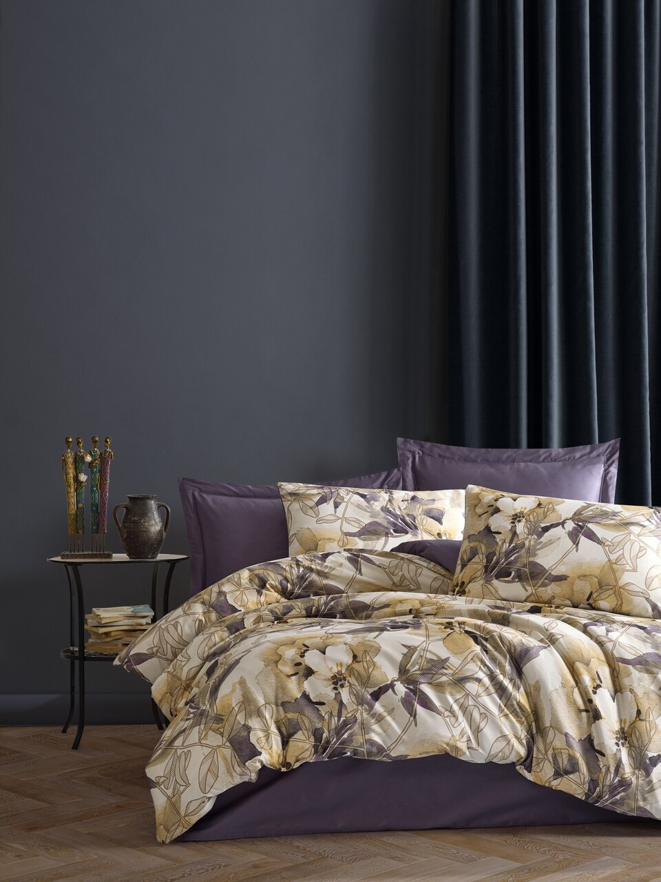 Lenjerie de pat dubla, L'essentiel Maison, Florence, Mov / Bej / Galben / Crem