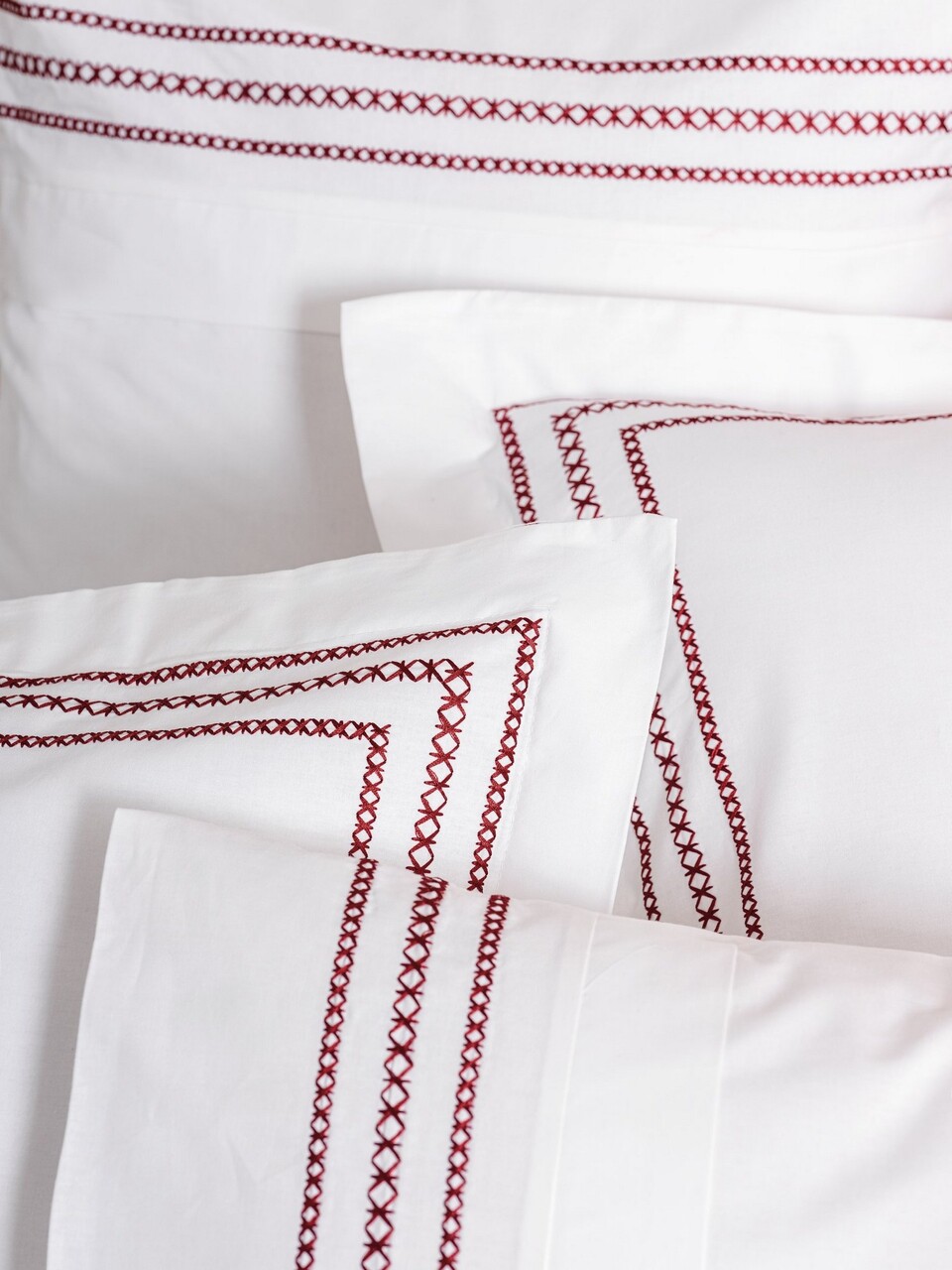 Lenjerie de pat dubla, L'essentiel Maison, Helya, Alb / Roșu Claret