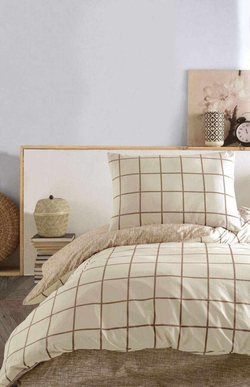 Lenjerie de pat dubla, L'essentiel Maison, Kare, Bumbac Ranforce, Crem
