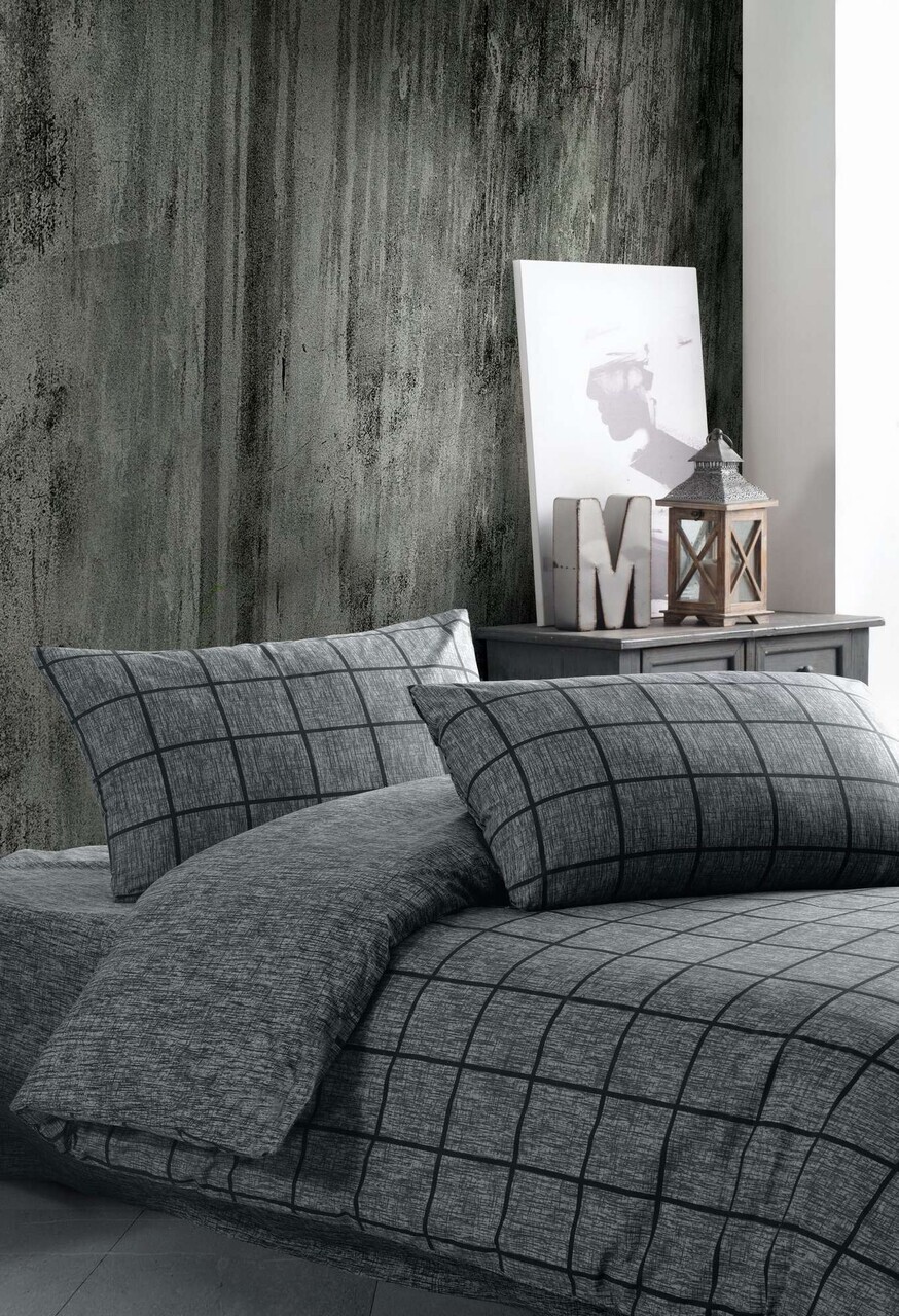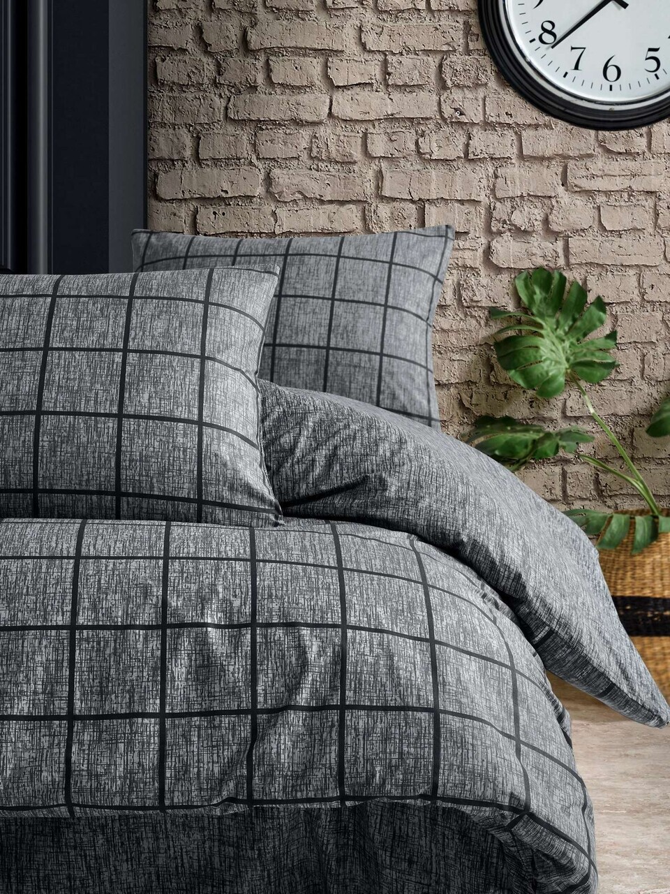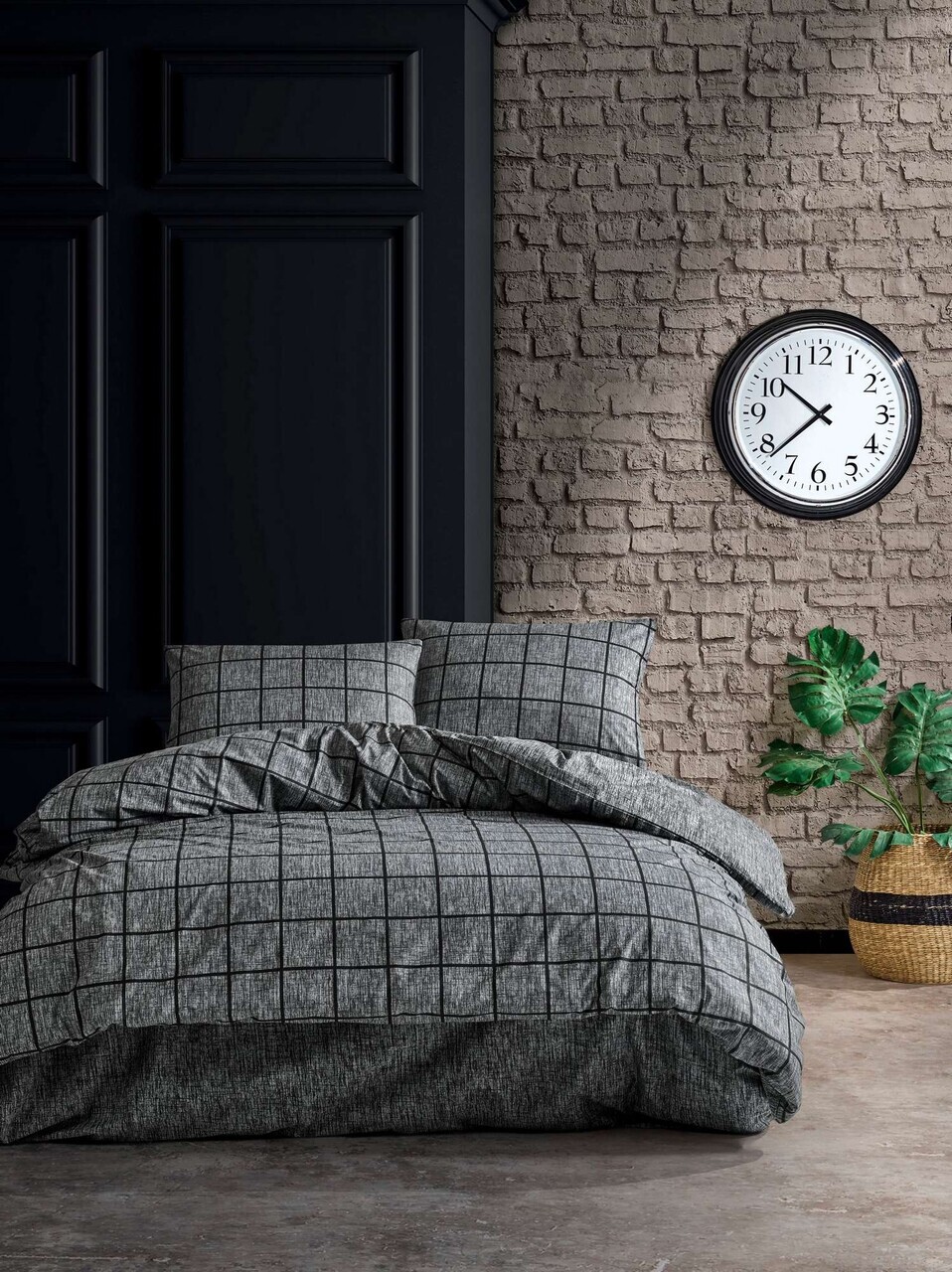Lenjerie de pat dubla, L'essentiel Maison, Kare, Bumbac Ranforce, Negru