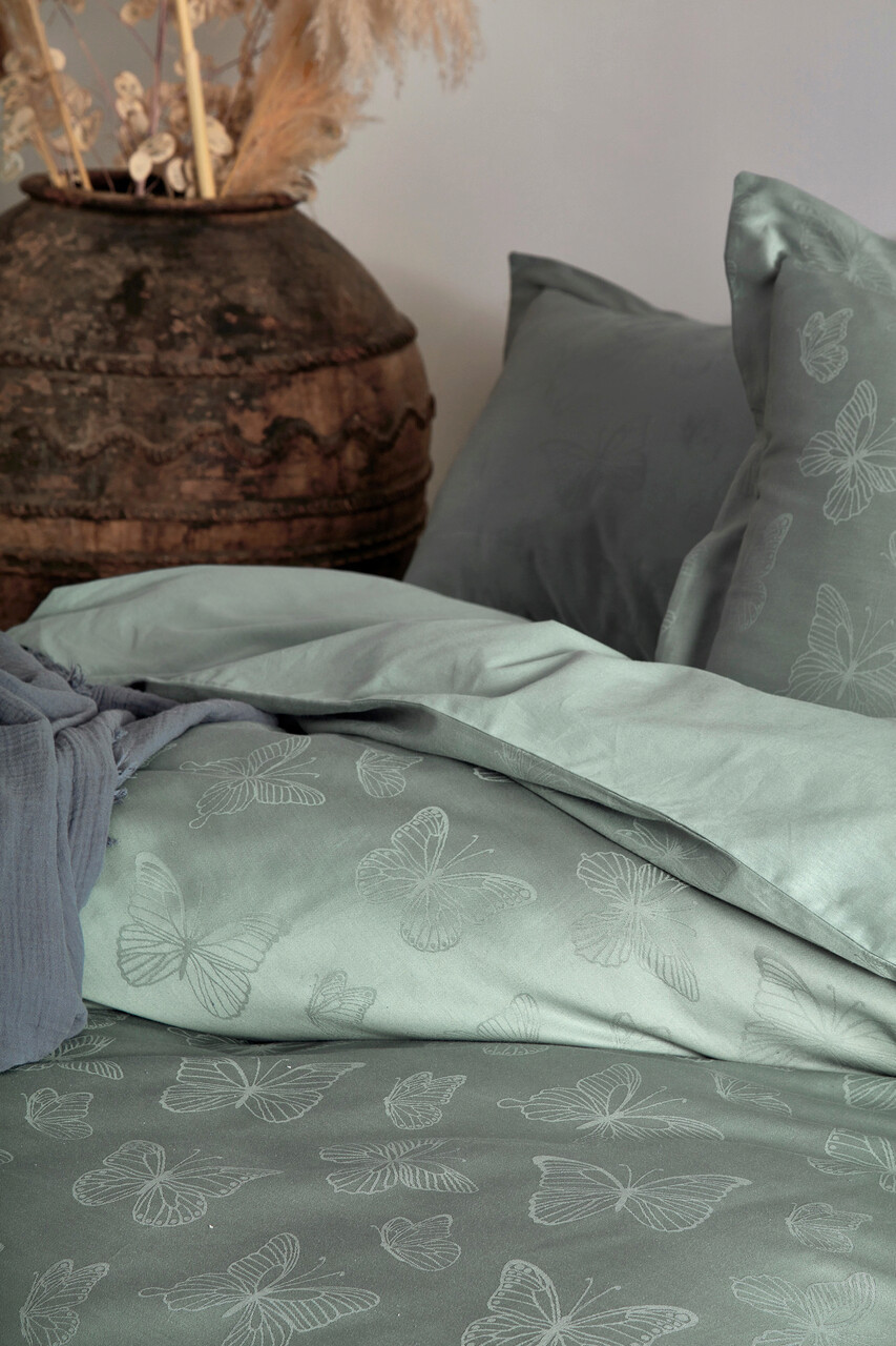 Lenjerie de pat dubla, L'essentiel Maison, Kelebek, Verde