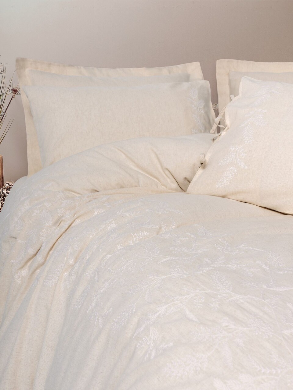 Lenjerie de pat dubla, L'essentiel Maison, Kivora, 25% in / 75% bumbac, Bej