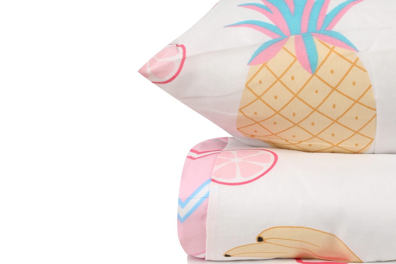Lenjerie de pat dubla, L'essentiel Maison, Kokteyl, Alb / Roz / Albastru / Galben
