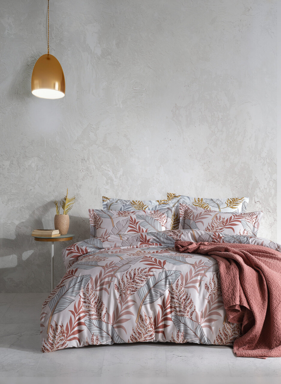 Lenjerie de pat dubla, L'essentiel Maison, Lionel, Roz / Pudră / Albastru deschis