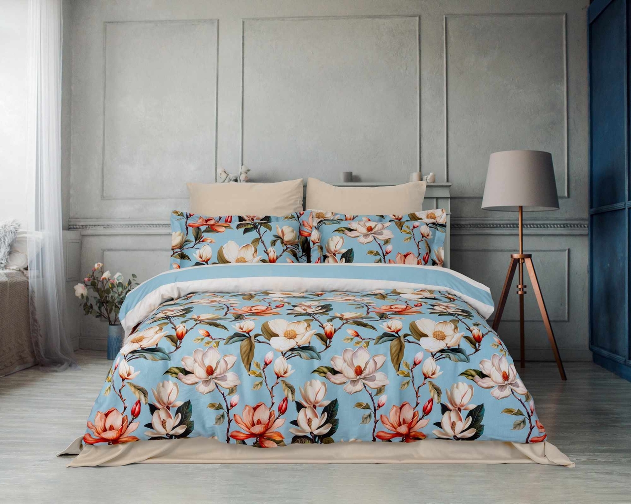 Lenjerie de pat dubla, L'essentiel Maison, Manolya, Albastru