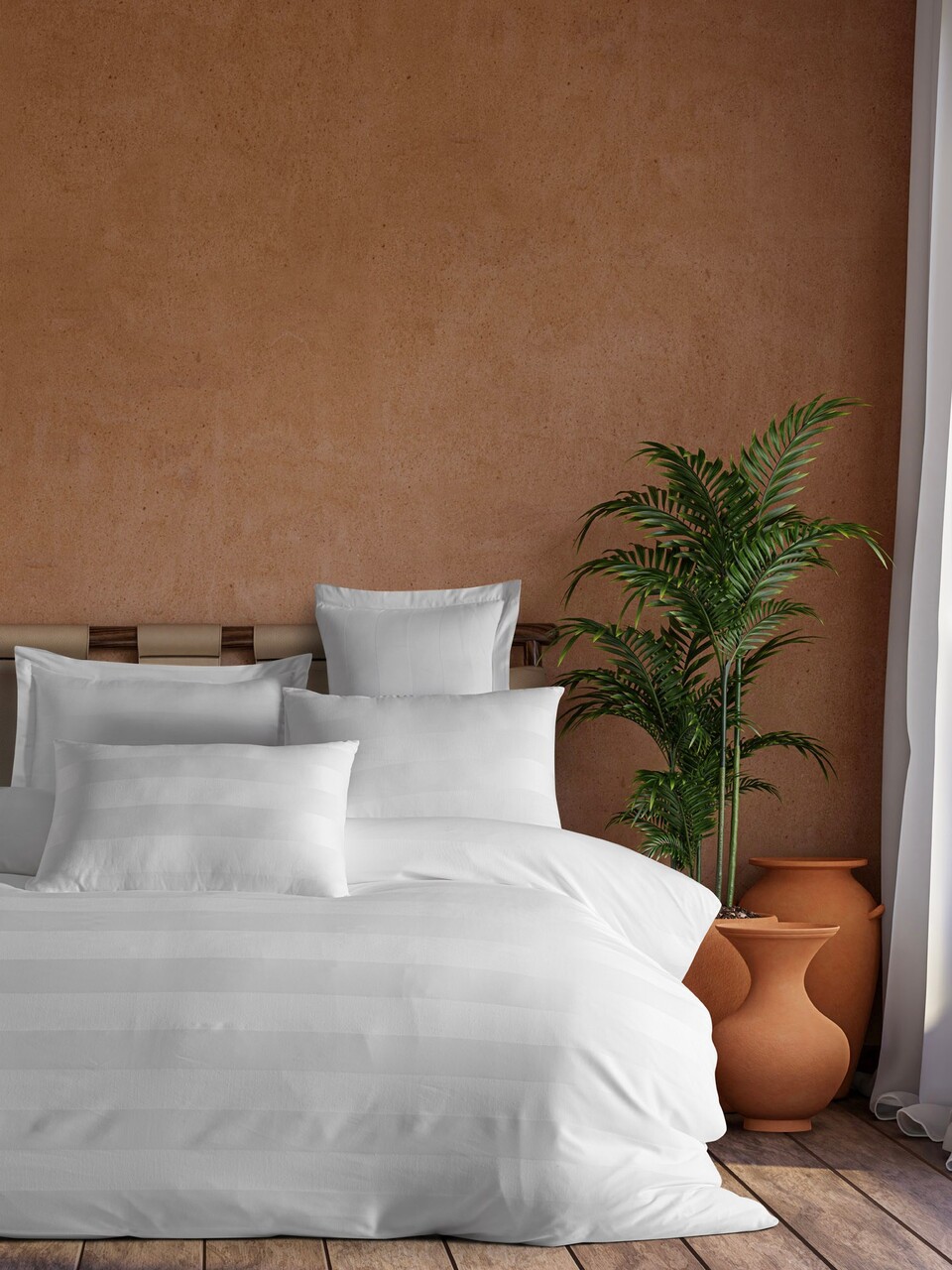 Lenjerie de pat dubla, L'essentiel Maison, Max Yollu Saten, Bumbac;Poliester, Alb