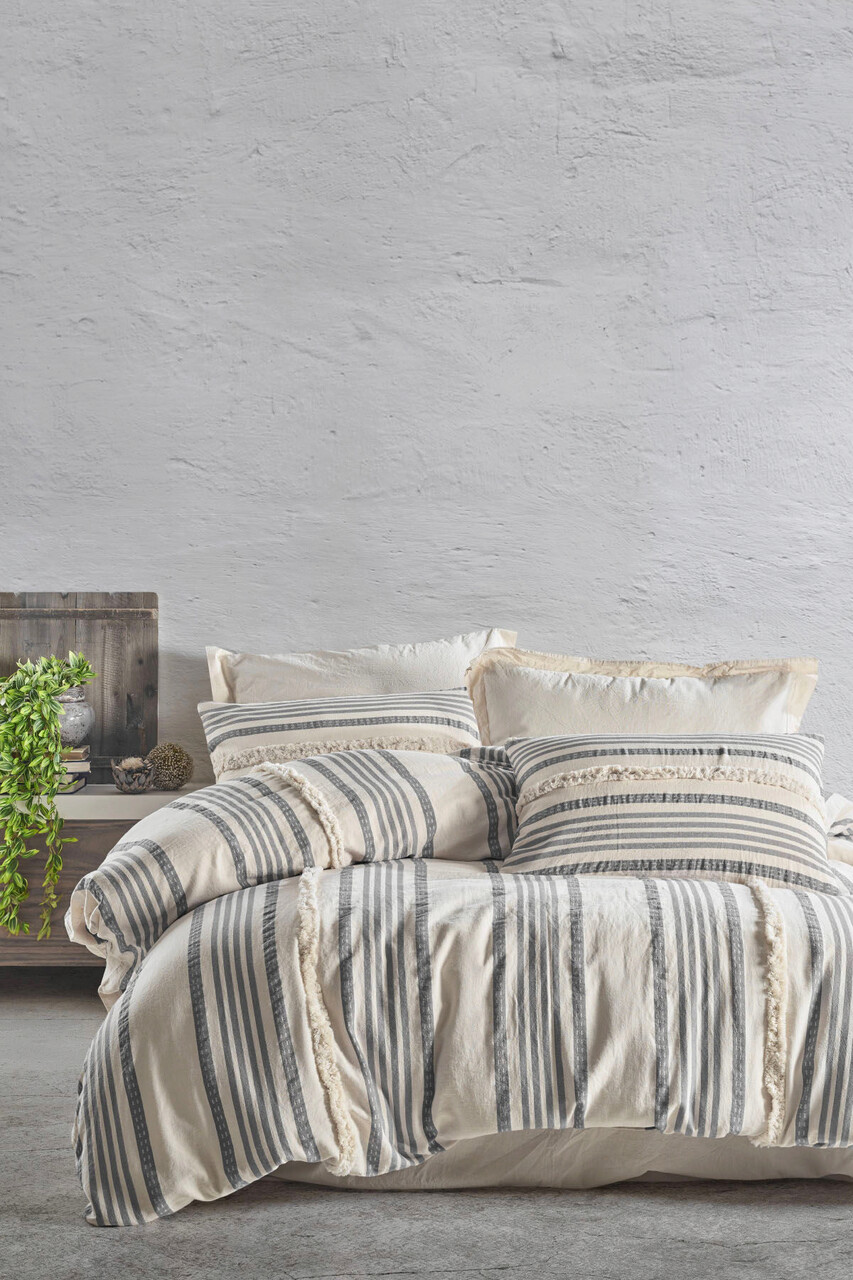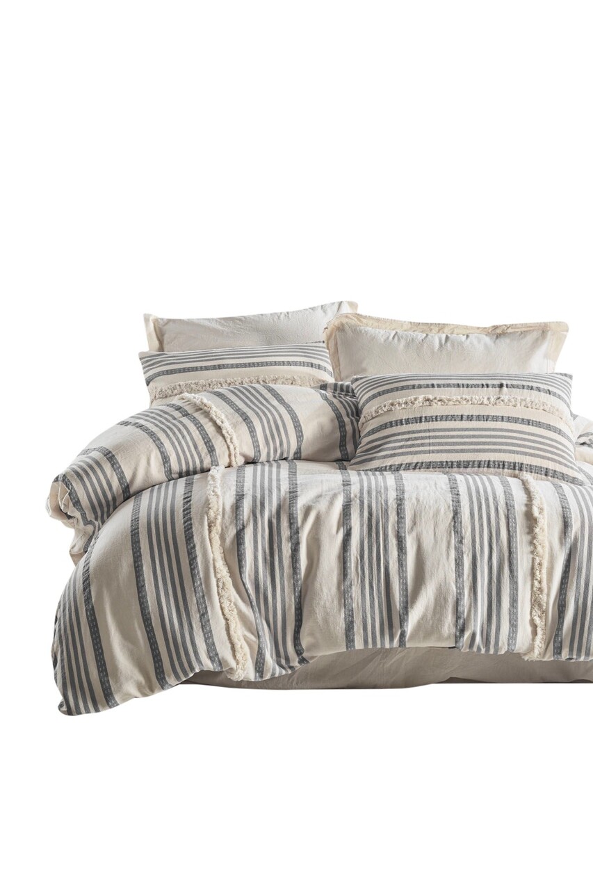 Lenjerie de pat dubla, L'essentiel Maison, Nidus, Gri / Crem