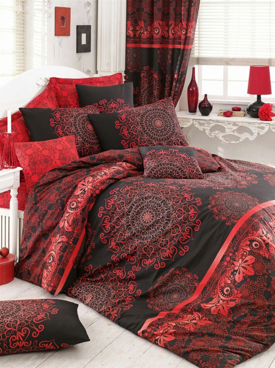 Lenjerie de pat dubla, L'essentiel Maison, Osmanlı, Red / Claret Red / Black