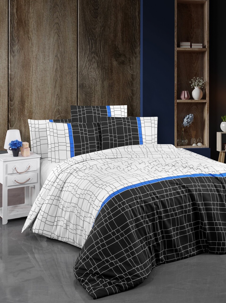 Lenjerie de pat dubla, L'essentiel Maison, Patya, Alb / Negru / Albastru