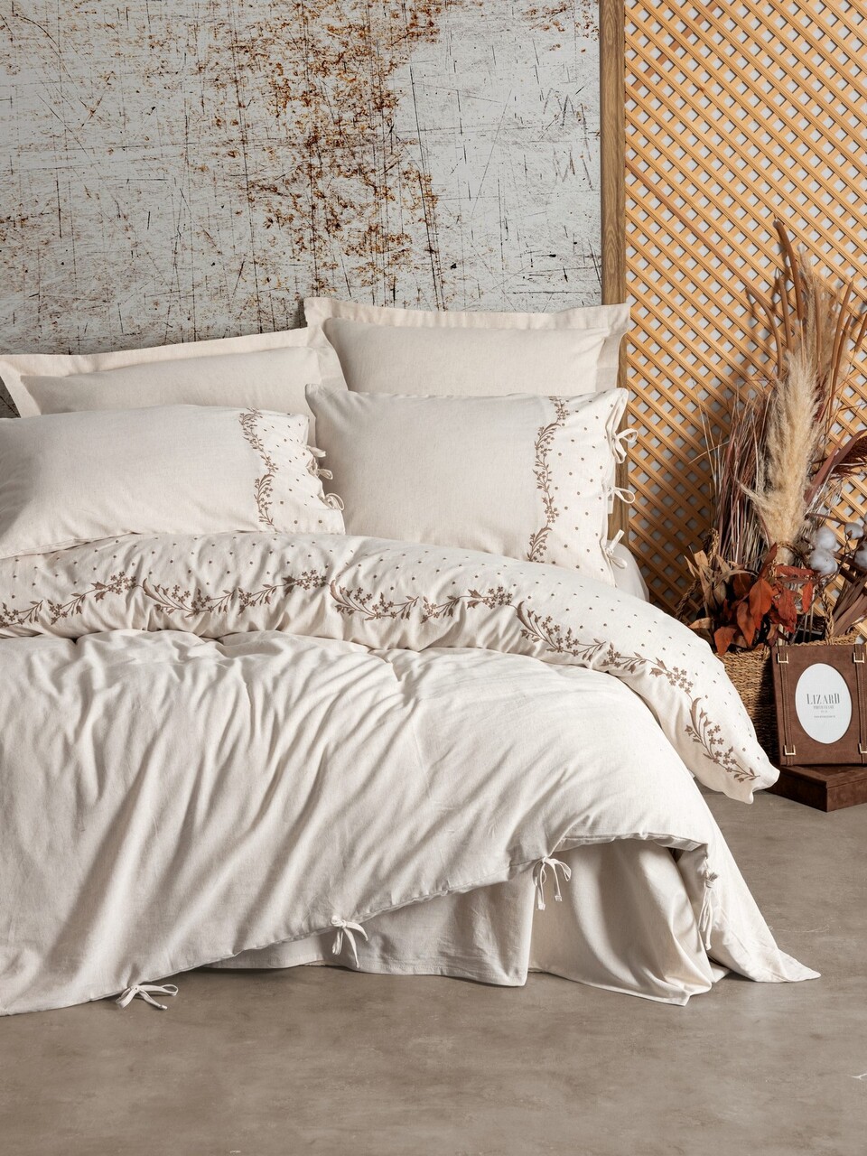 Lenjerie de pat dubla, L'essentiel Maison, Pelias, Bej/Maro