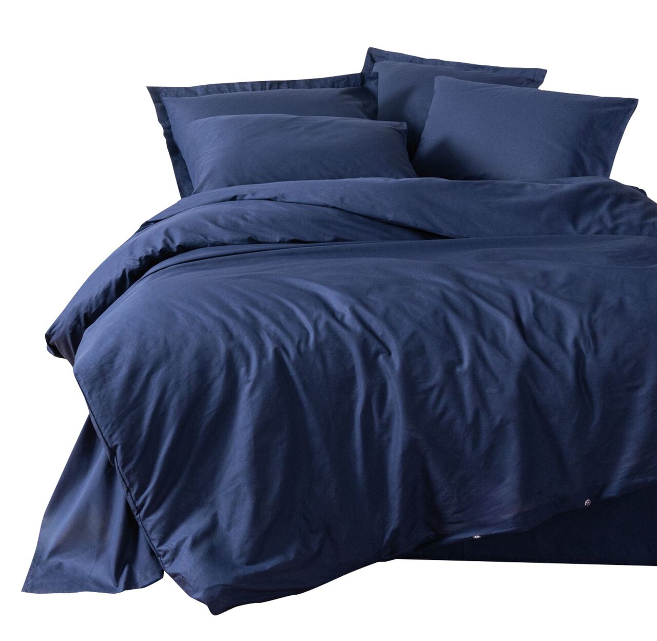 Lenjerie de pat dubla, L'essentiel Maison, Plain, Albastru inchis