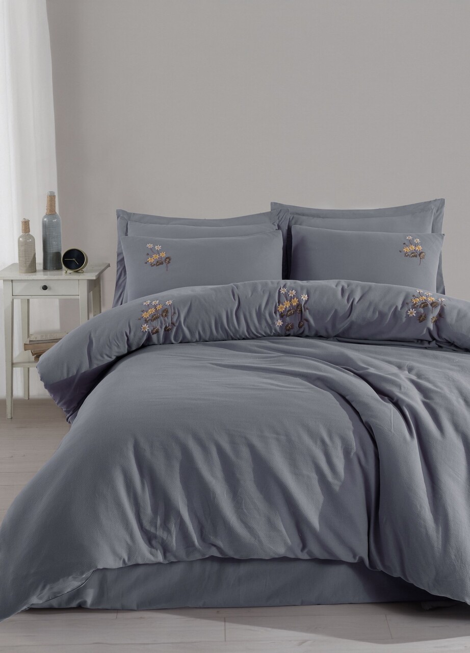 Lenjerie de pat dubla, L'essentiel Maison, Poppy, Antracit