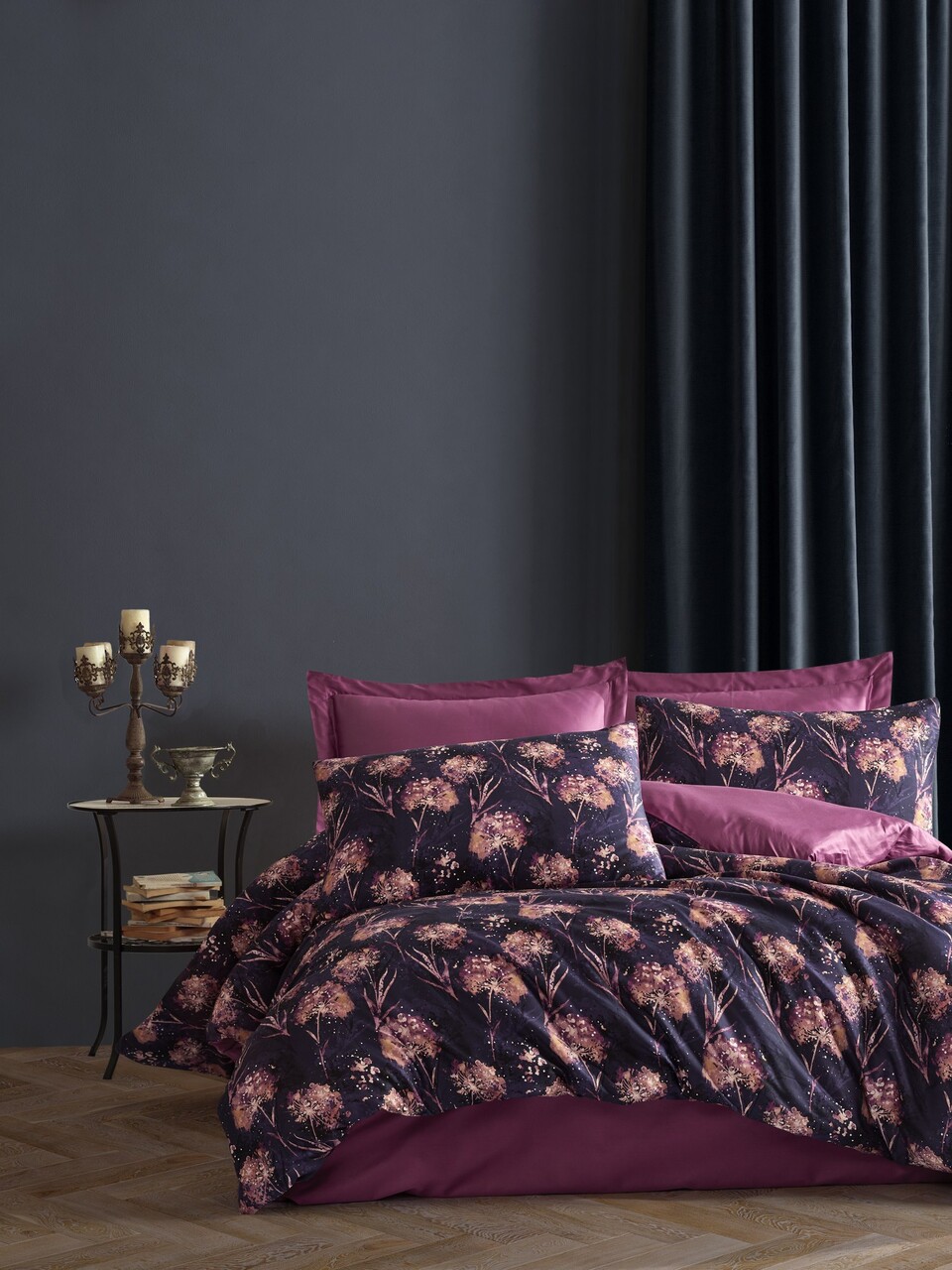 Lenjerie de pat dubla, L'essentiel Maison, Santino, Albastru închis / Damasc