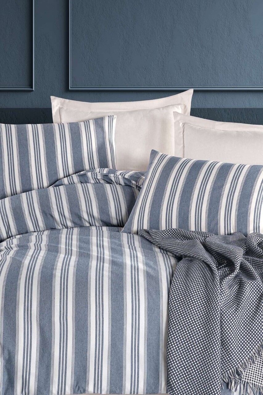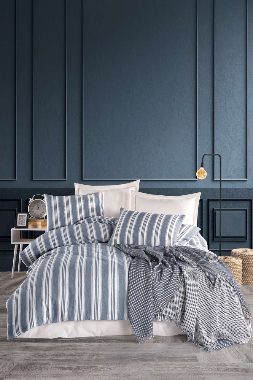 Lenjerie de pat dubla, L'essentiel Maison, Soft Line, Albastru navy