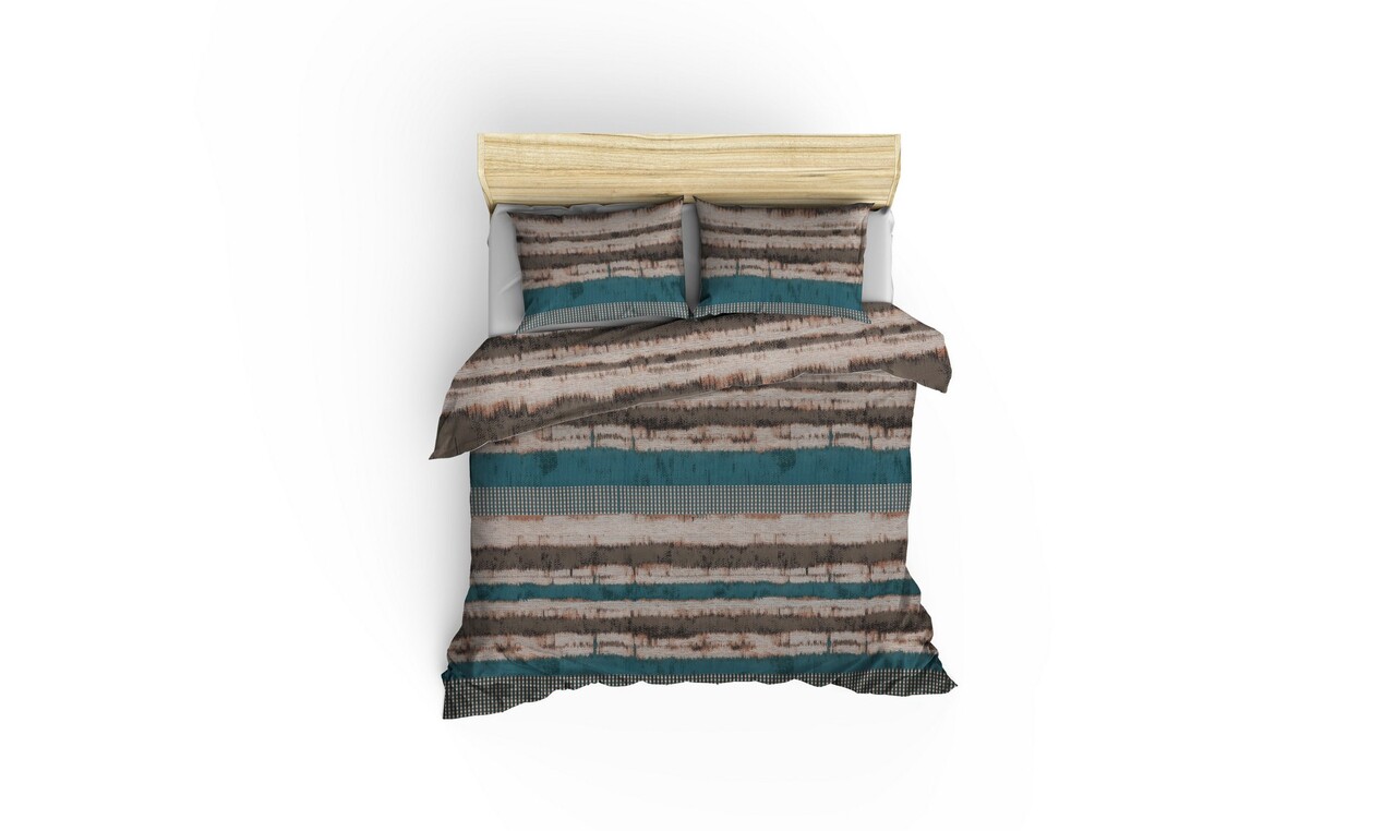 Lenjerie de pat dubla, L'essentiel Maison, Stella, Albastru / Crem / Gri