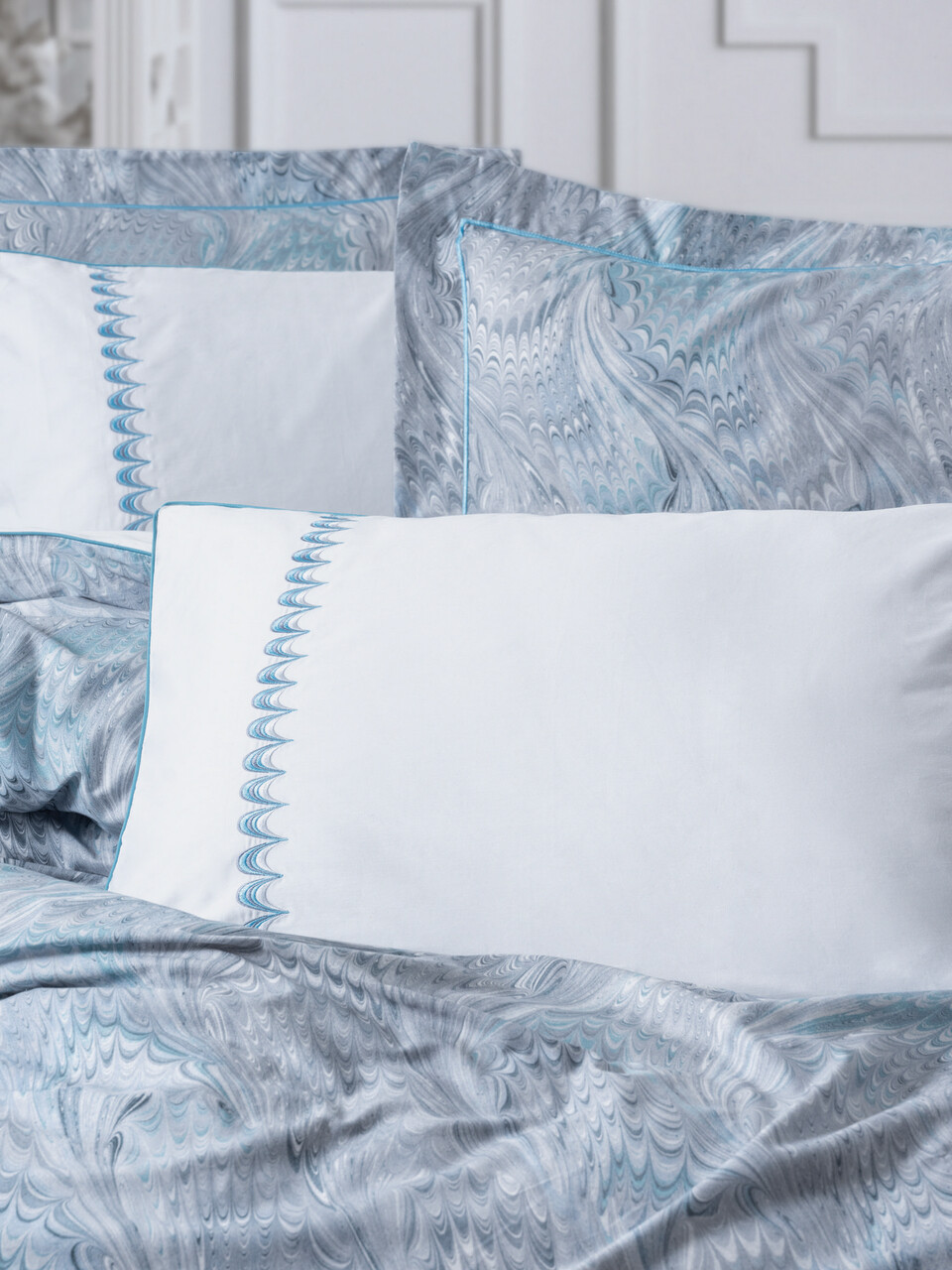 Lenjerie de pat dubla, L'essentiel Maison, Stilla, Albastru/Alb