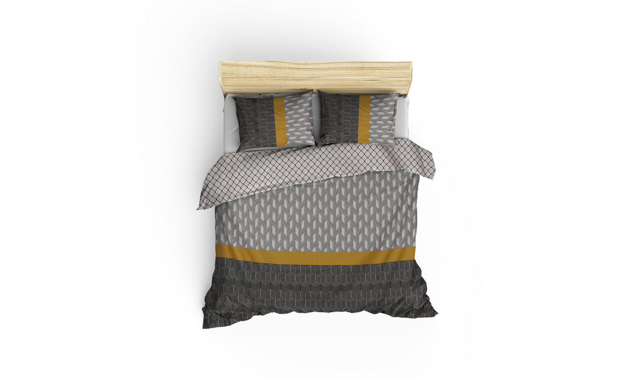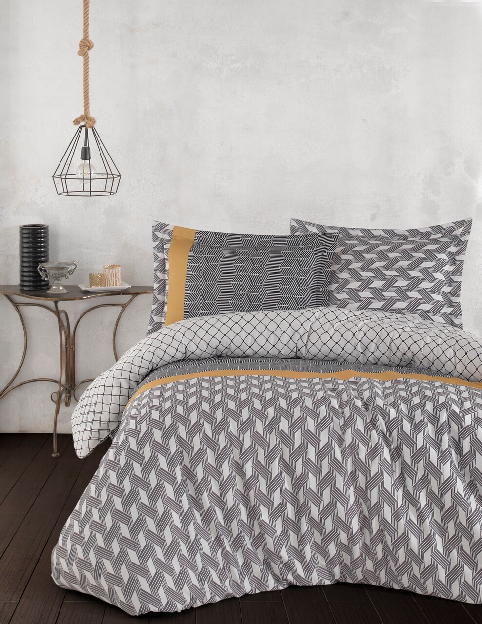 Lenjerie de pat dubla, L'essentiel Maison, Veneto, Negru / Alb / Portocaliu