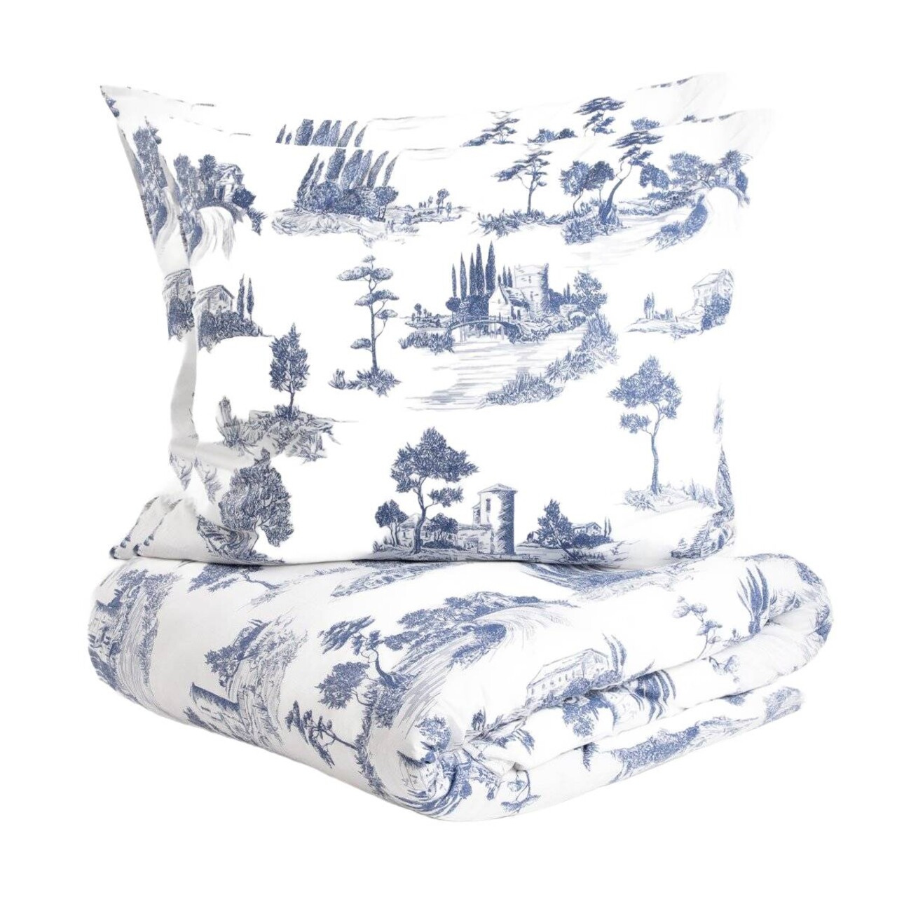 Lenjerie de pat dubla Lemai, Homla, 3 piese, 160x200 cm, bumbac, alb/albastru