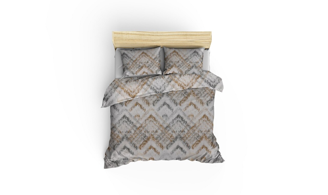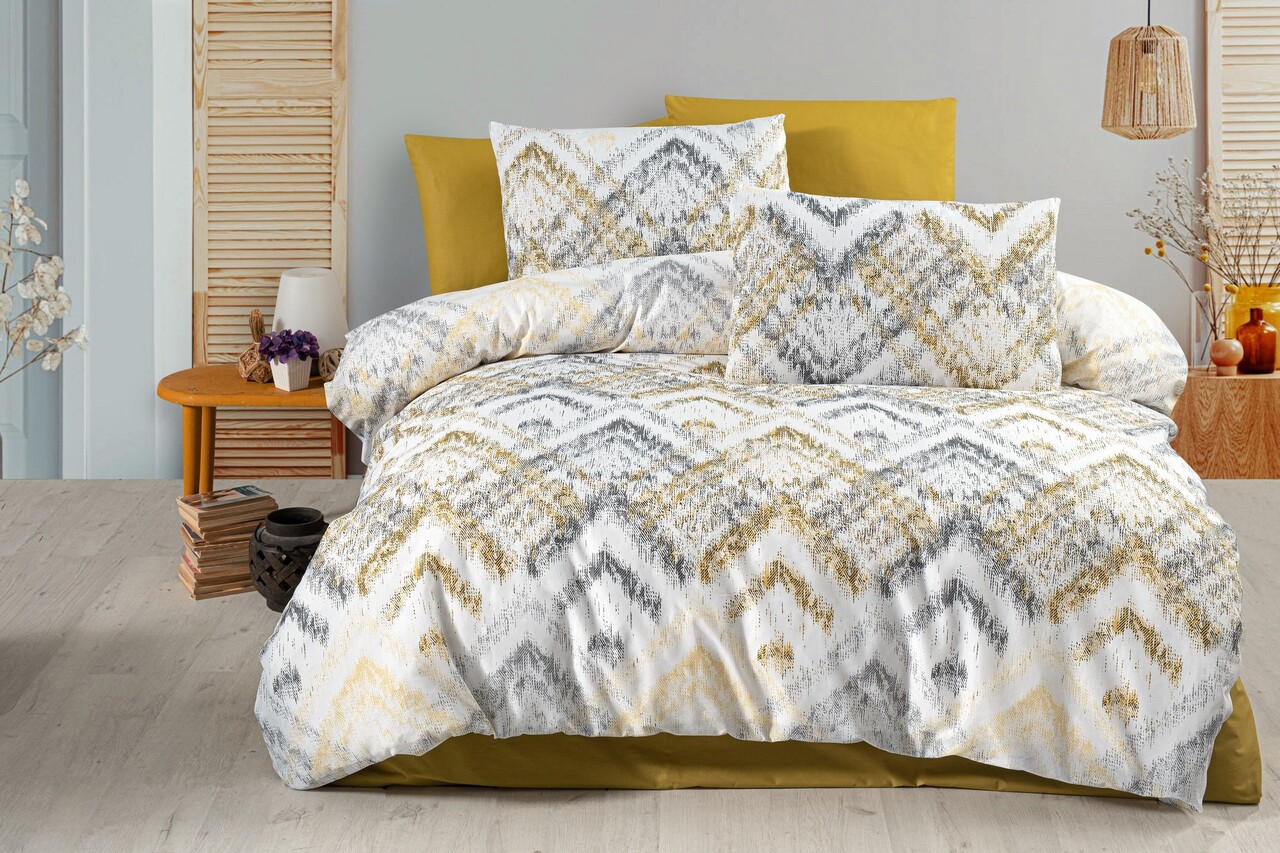 Lenjerie de pat dubla, L'essentiel Maison, Aurora, Muștar / Crem / Gri