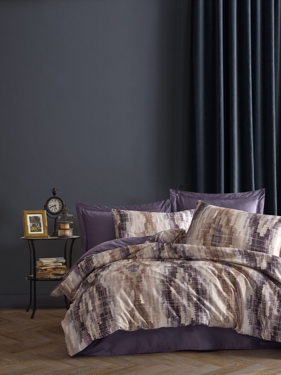 Lenjerie de pat dubla, L'essentiel Maison, Mateo, Mov / Alb / Maro