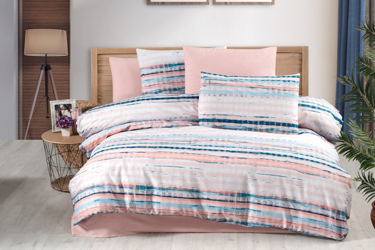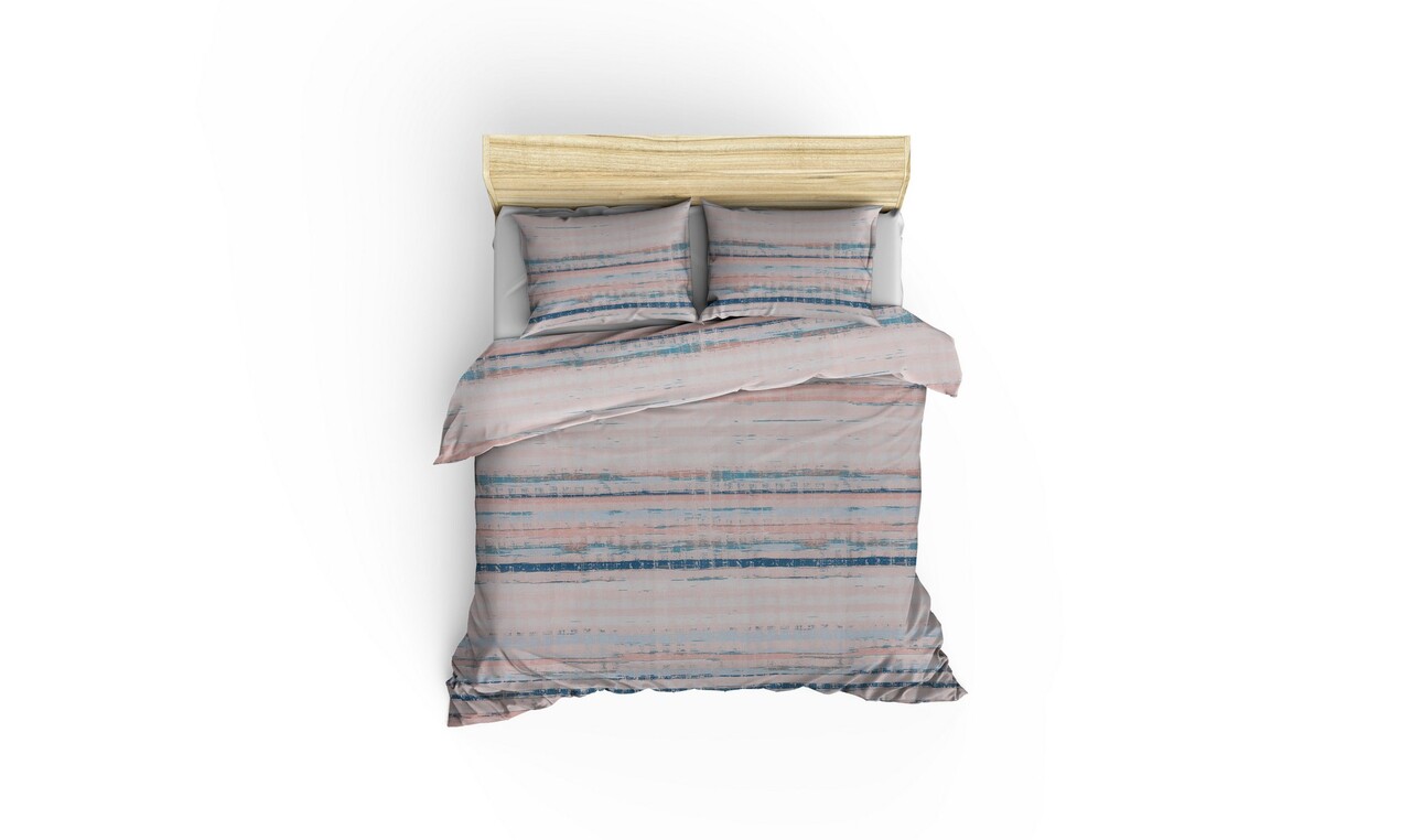 Lenjerie de pat dubla, L'essentiel Maison, Terra, Pulbere / Alb / Albastru