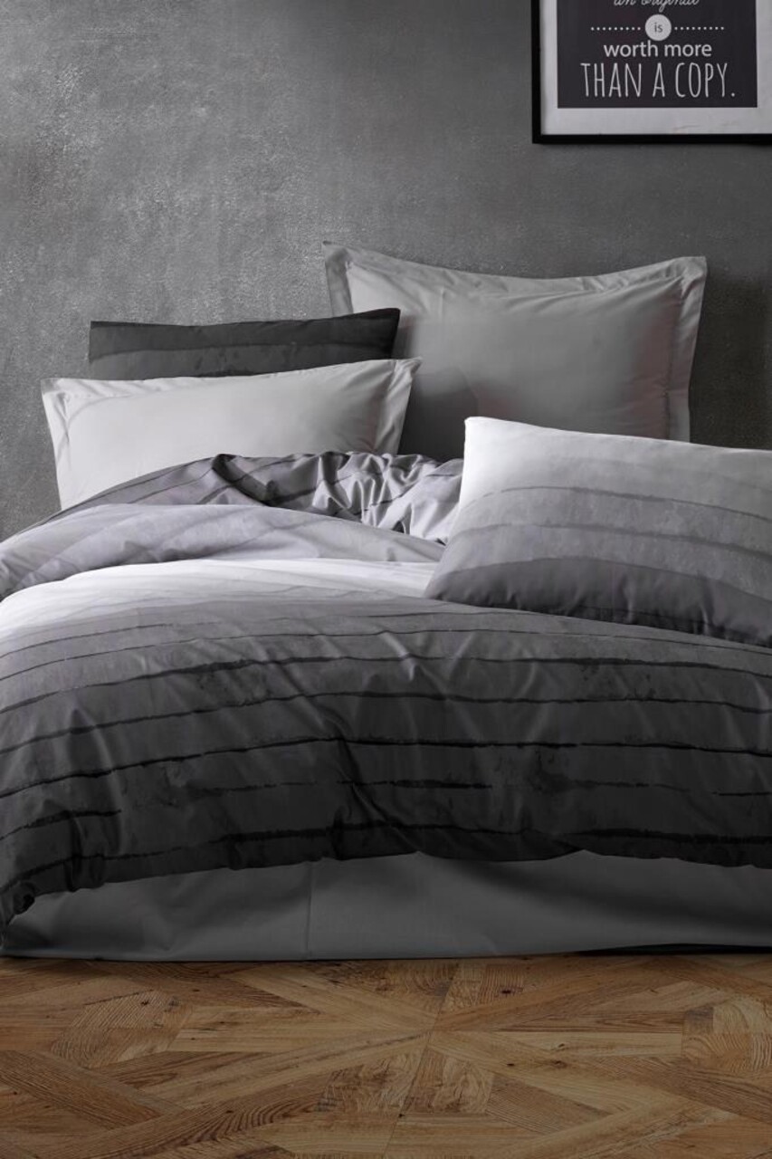 Lenjerie de pat dubla, L'essentiel Maison, Yogi, Antracit / Gri / Gri deschis