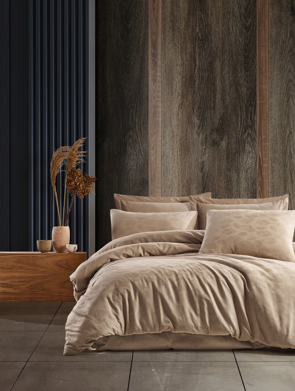 Lenjerie de pat dubla, Lily - Beige, Şaheser, Bumbac
