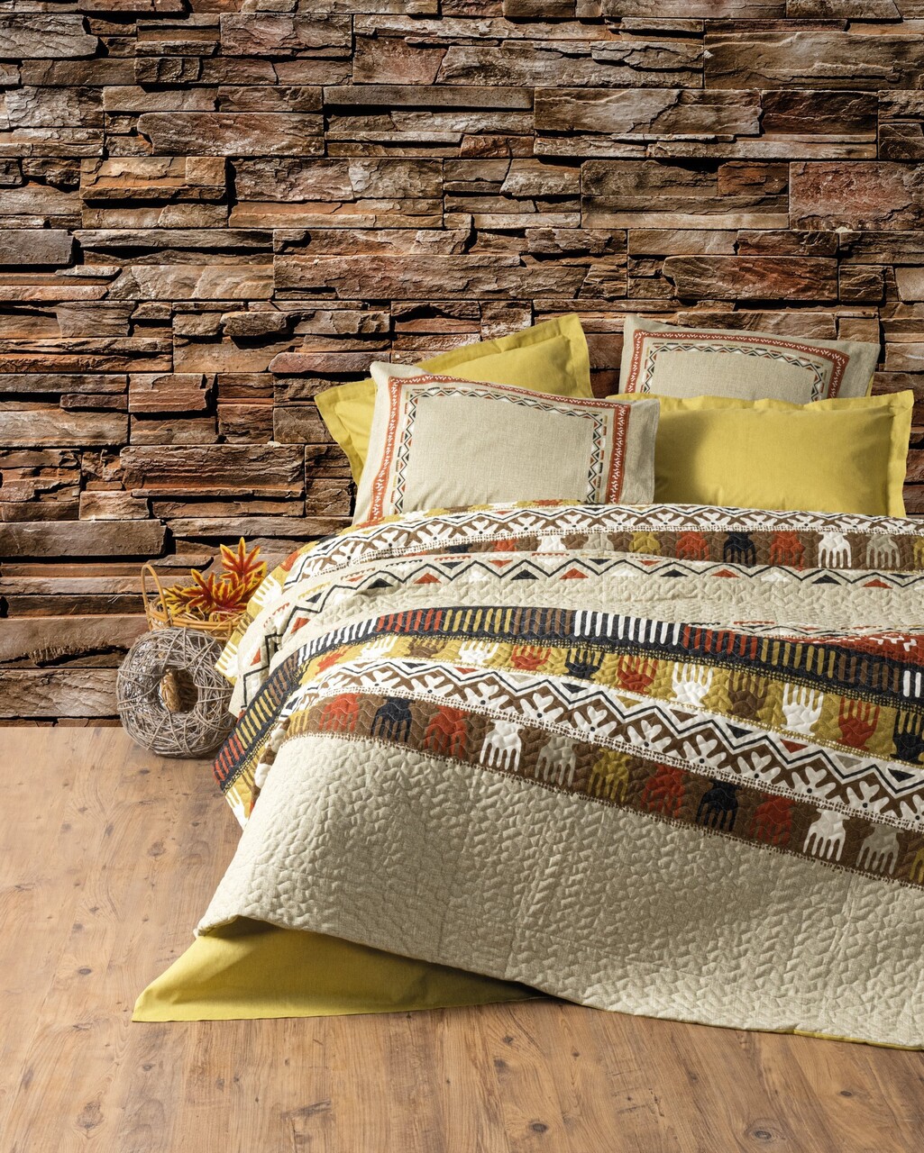 Lenjerie de pat dubla, Magnus - Mustard, Cotton Box, Bumbac Ranforce