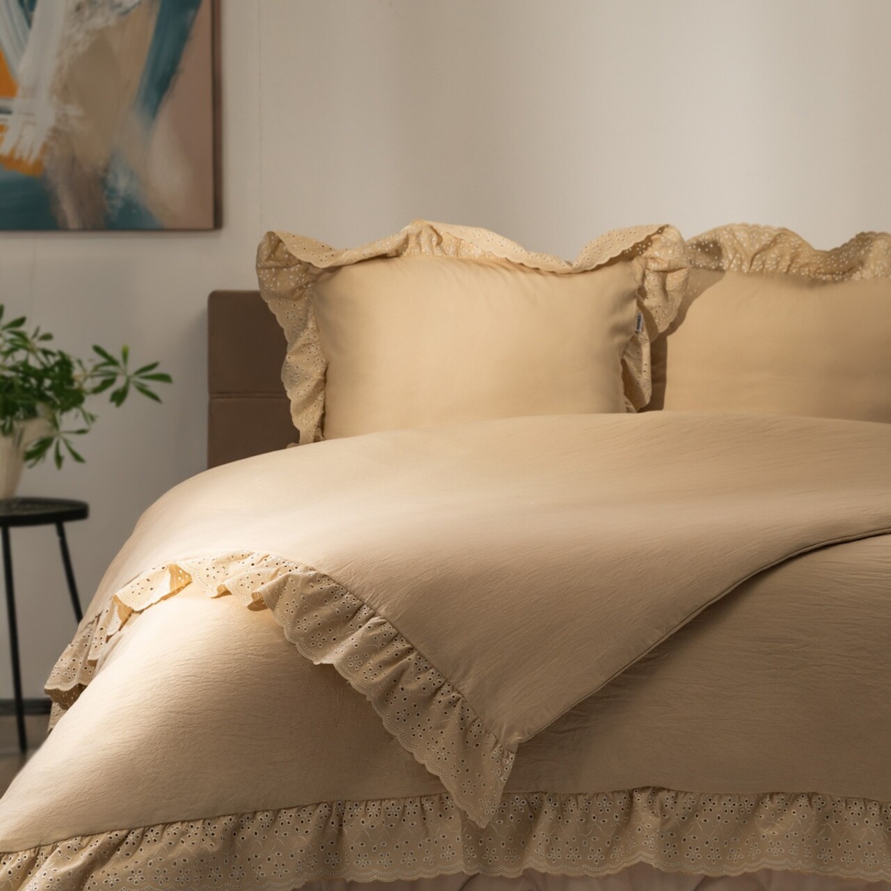 Lenjerie de pat dubla Morain, Homla, 3 piese, 160x200 cm, microfibra din poliester, bej