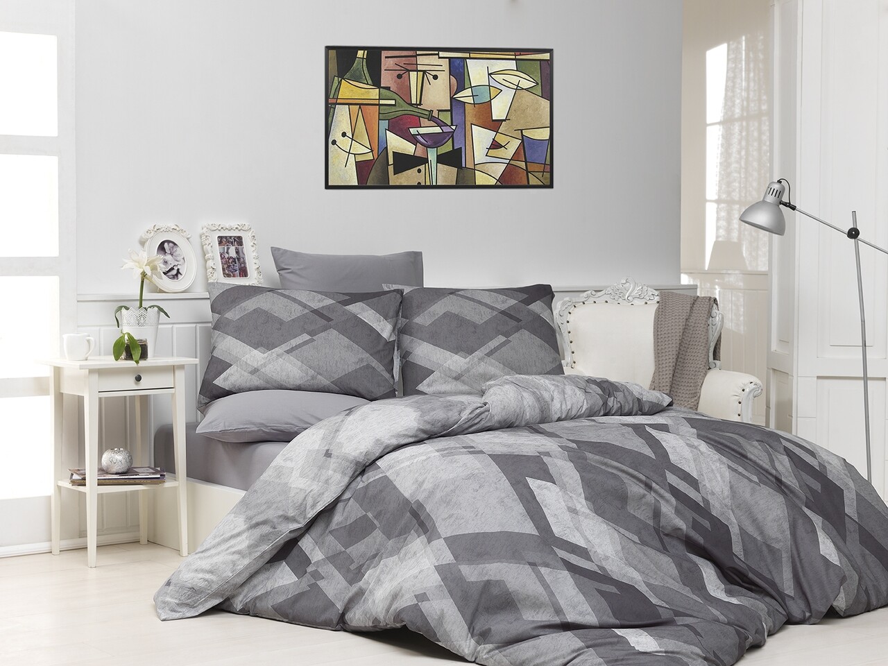 Lenjerie de pat dubla Mosaic V6, Majoli Home Collection, 4 piese, 240x260 cm, bumbac ranforce, gri