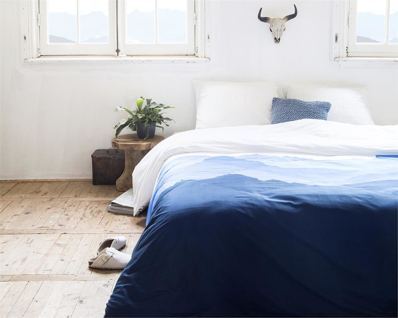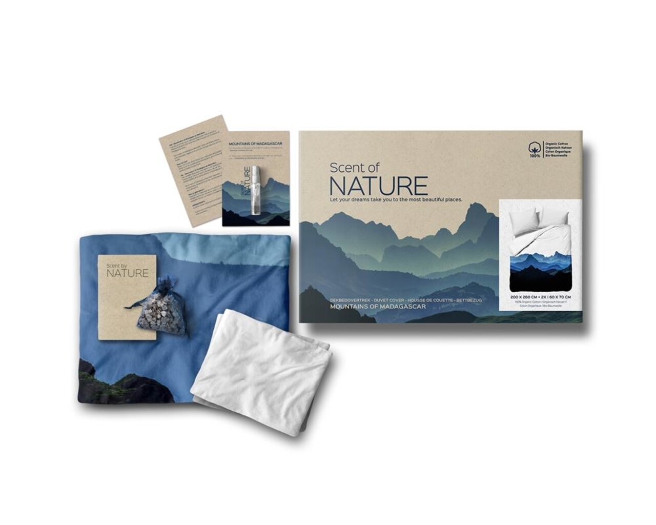 Lenjerie de pat dubla Mountains of Madagascar Blue, Scent of nature, 3 piese, 200x220/260 cm, bumbac, albastru