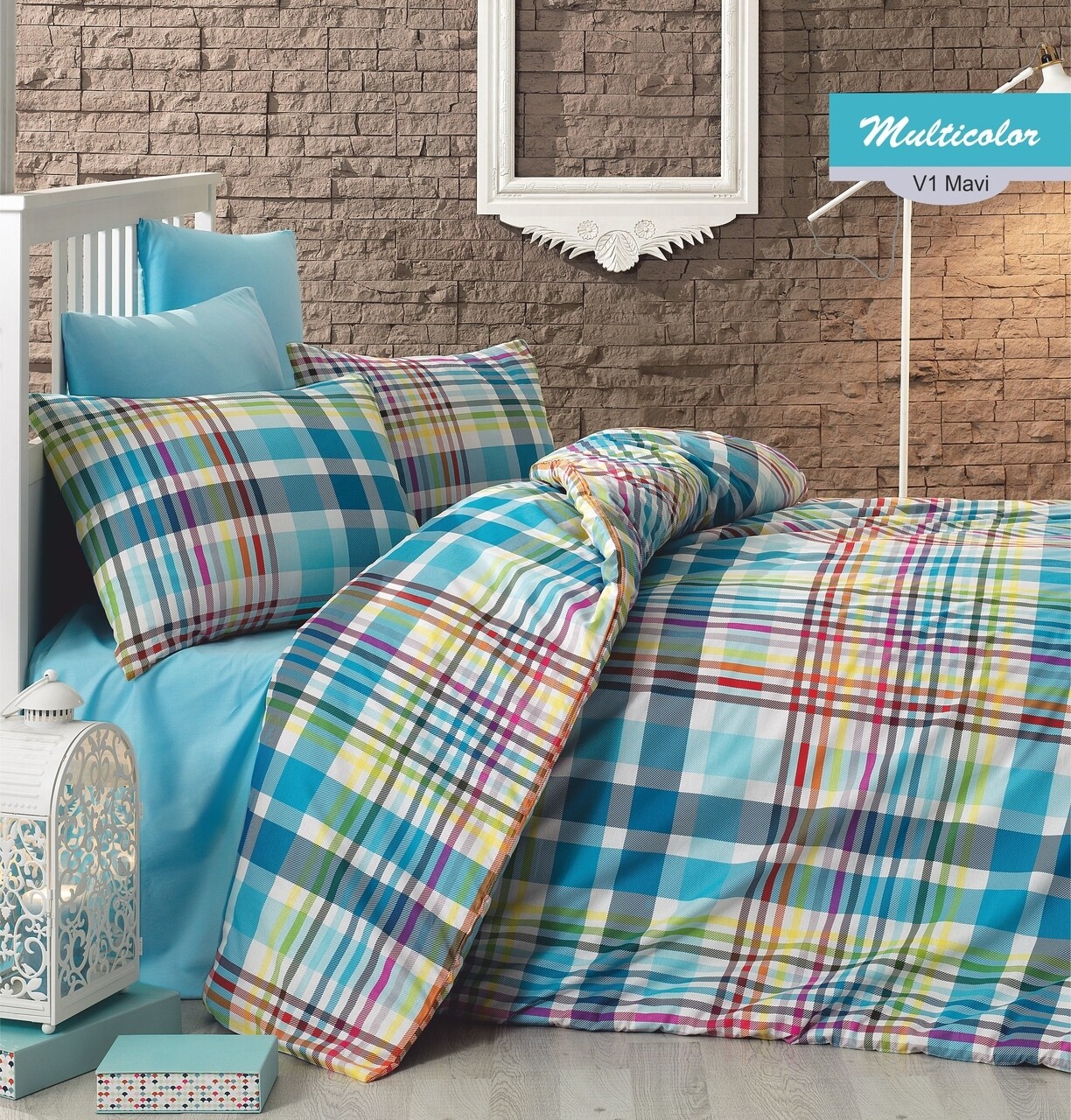 Lenjerie de pat dubla Multicolor, Majoli Home Collection, 4 piese, 200x220 cm, 100% bumbac ranforce, multicolor