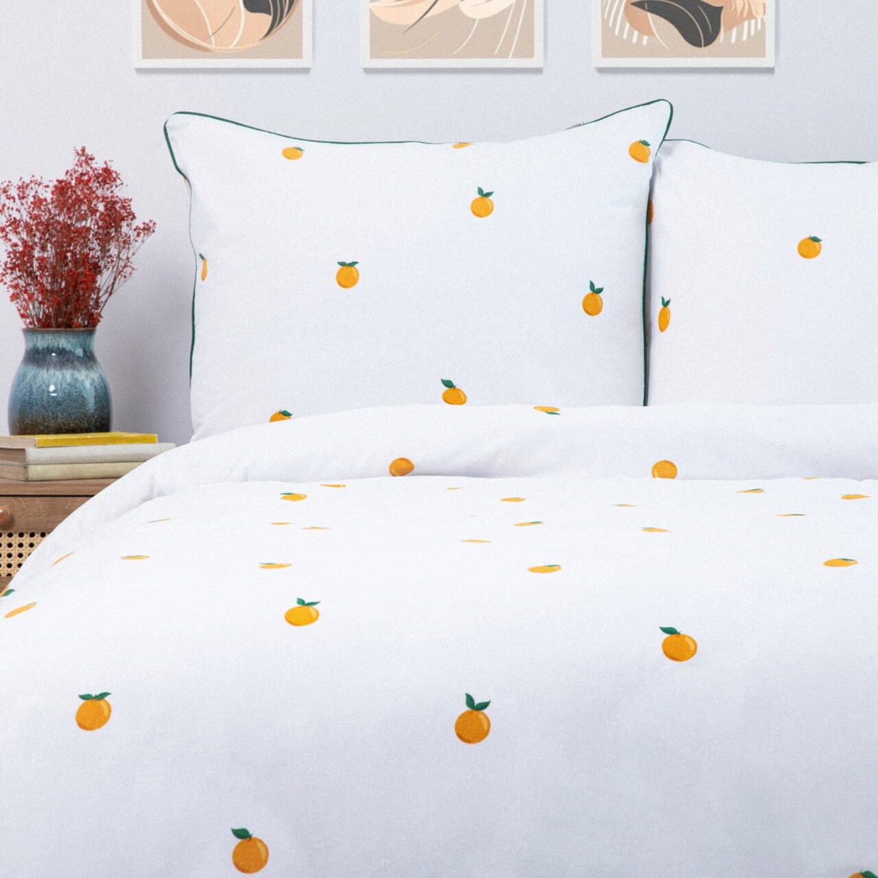 Lenjerie de pat dubla Orangie, Homla, 3 piese, 160x200 cm, bumbac, alb/portocaliu