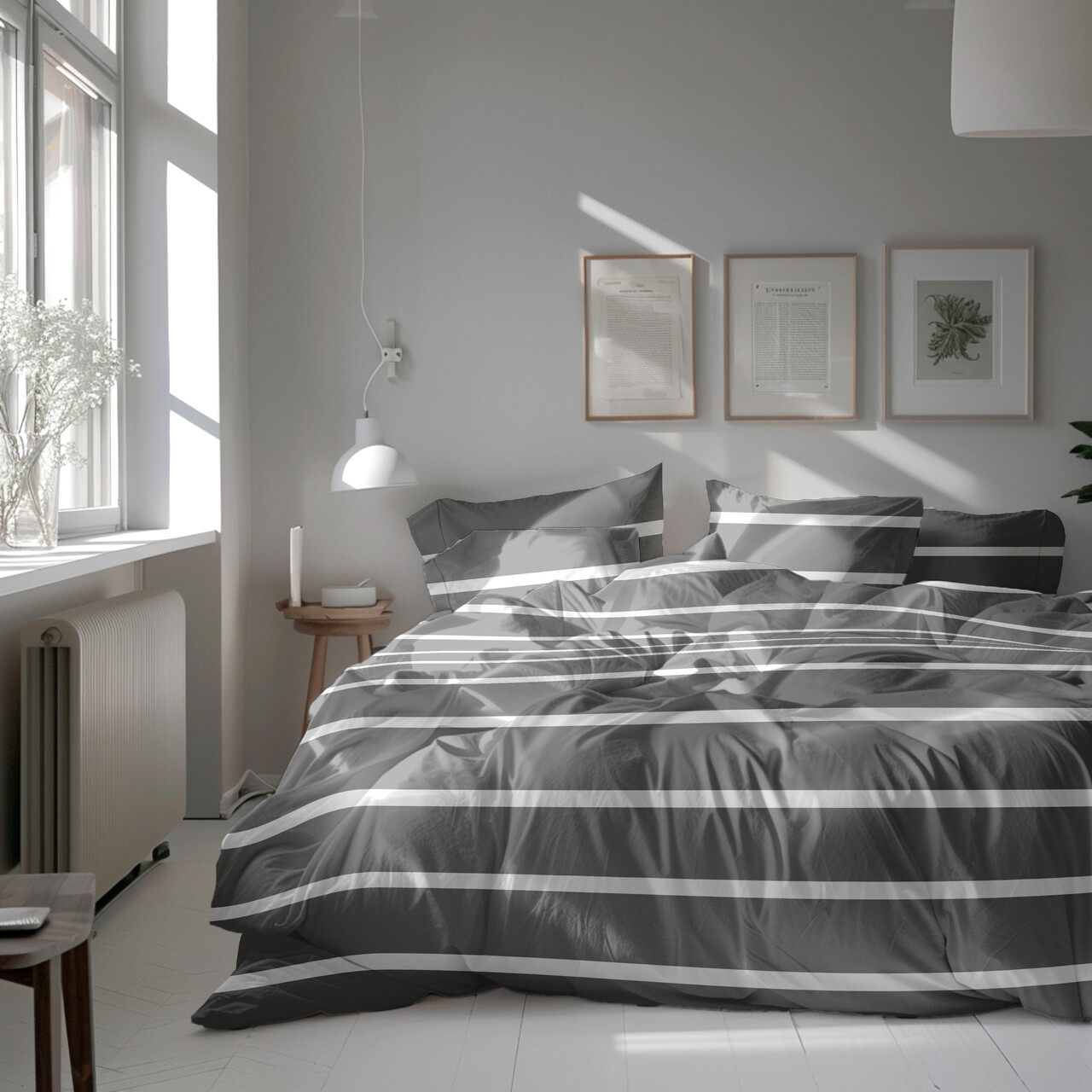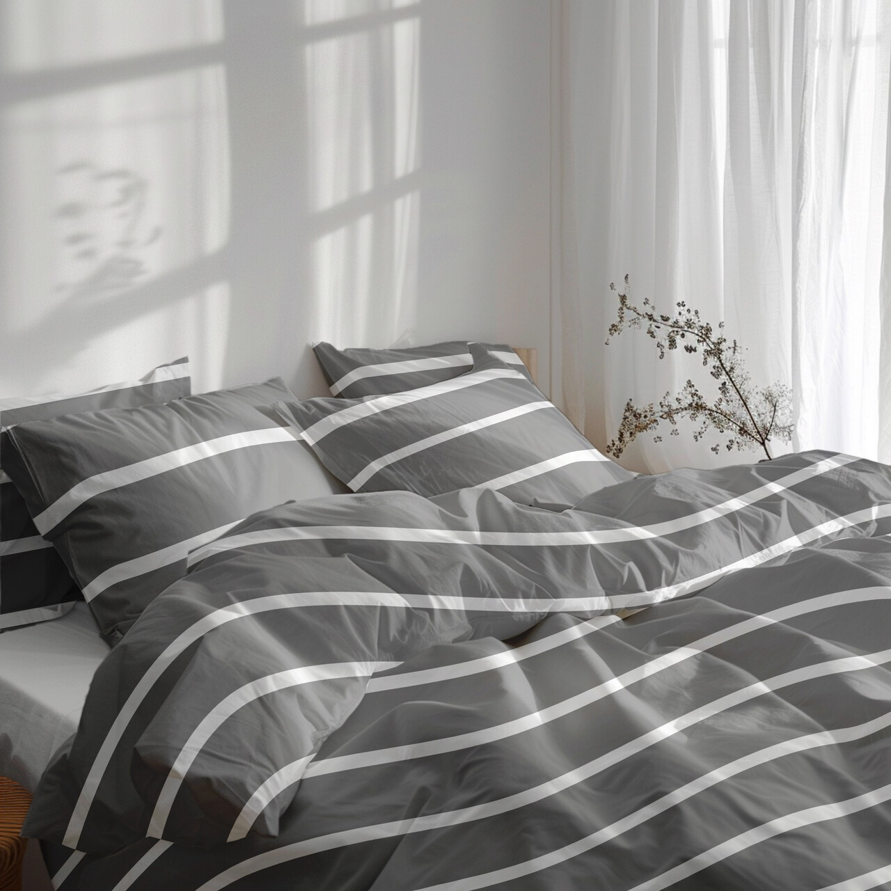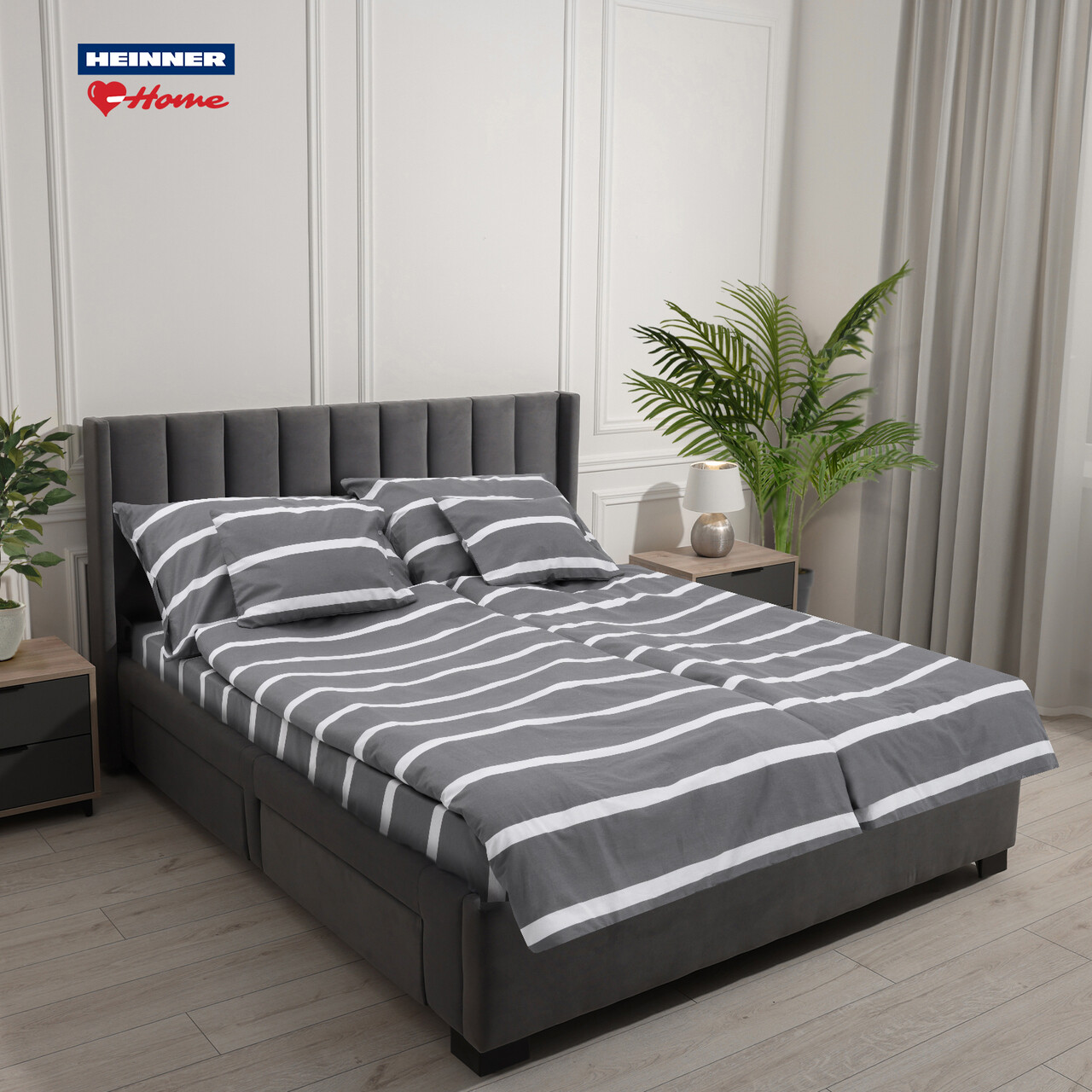 Lenjerie de pat dubla Pax, Heinner Home, 4 piese, 200x220 cm, 100% bumbac, gri