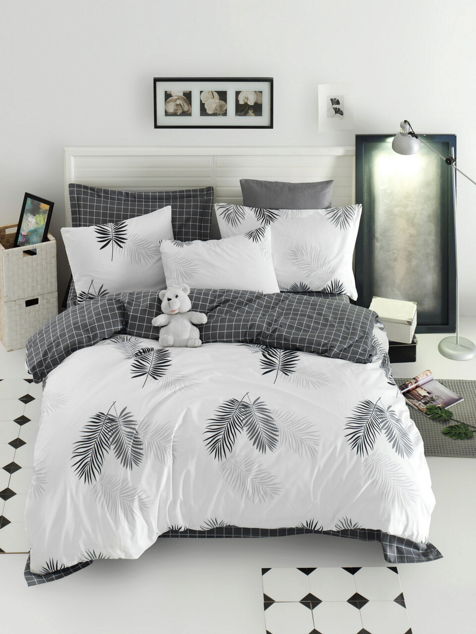 Lenjerie de pat dubla, Pipong - White, Grey, Acasă EnLora, Bumbac Ranforce