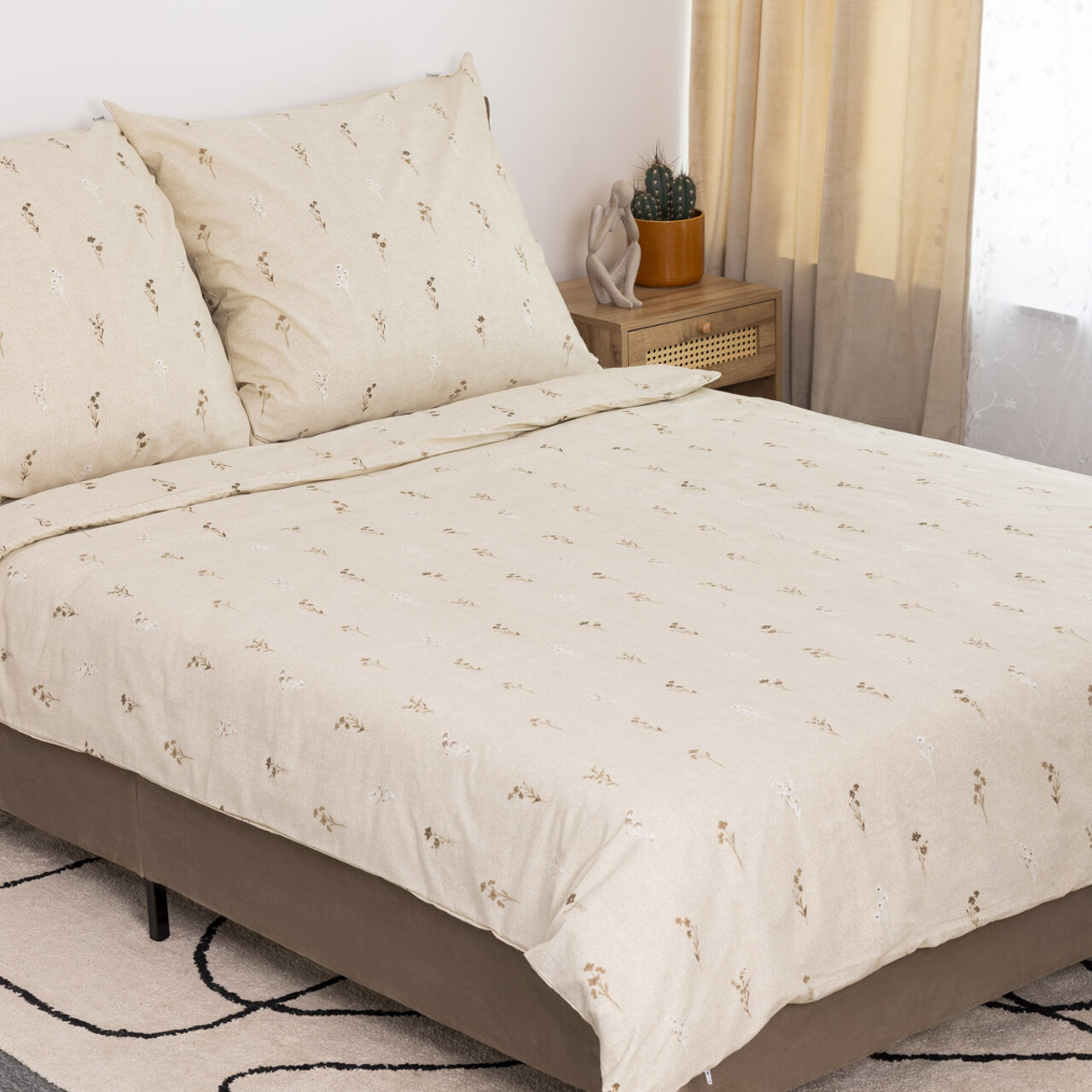 Lenjerie de pat dubla Rem, Homla, 3 piese, 160x200 cm, bumbac, bej