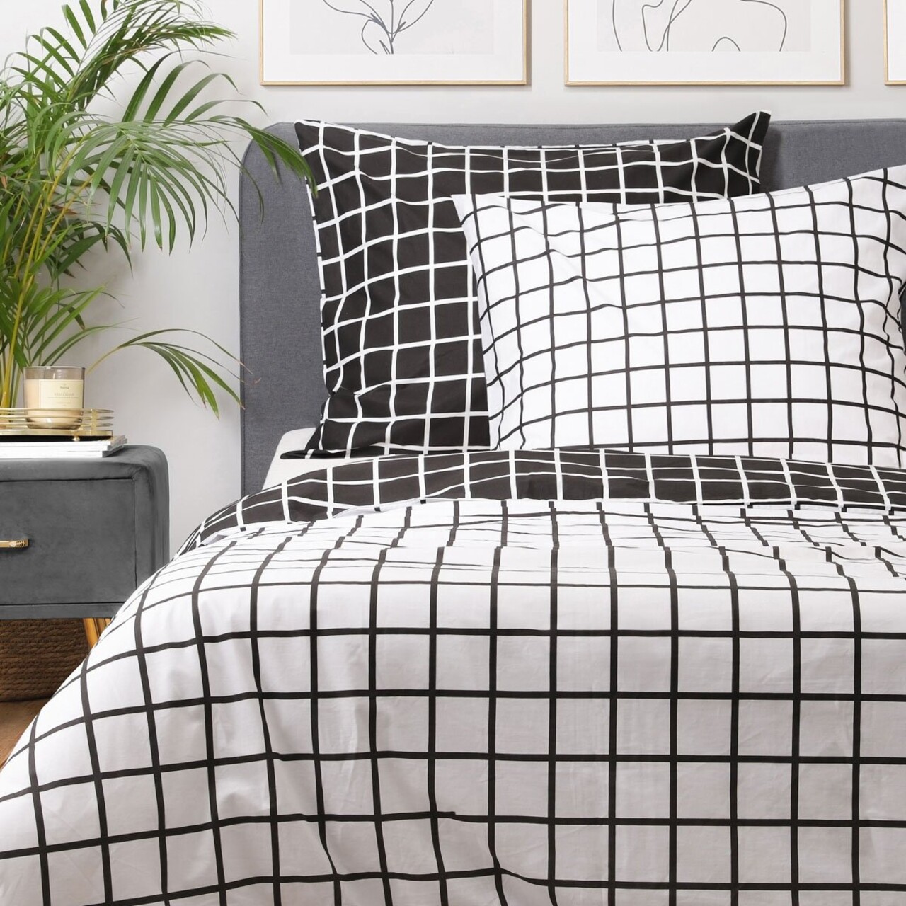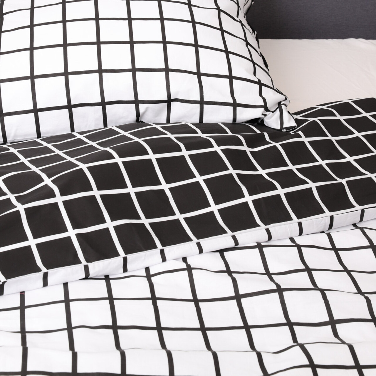 Lenjerie de pat dubla Reyes, Homla, 3 piese, 160x200 cm, bumbac, alb/negru