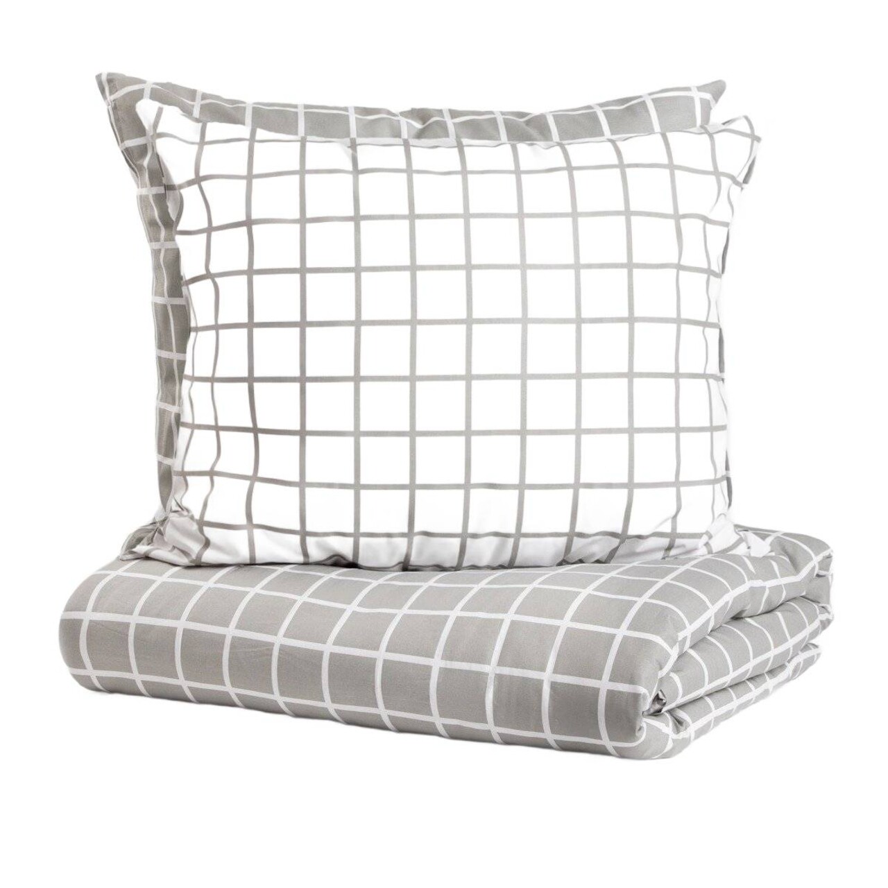 Lenjerie de pat dubla Reyes, Homla, 3 piese, 160x200 cm, bumbac, gri/alb