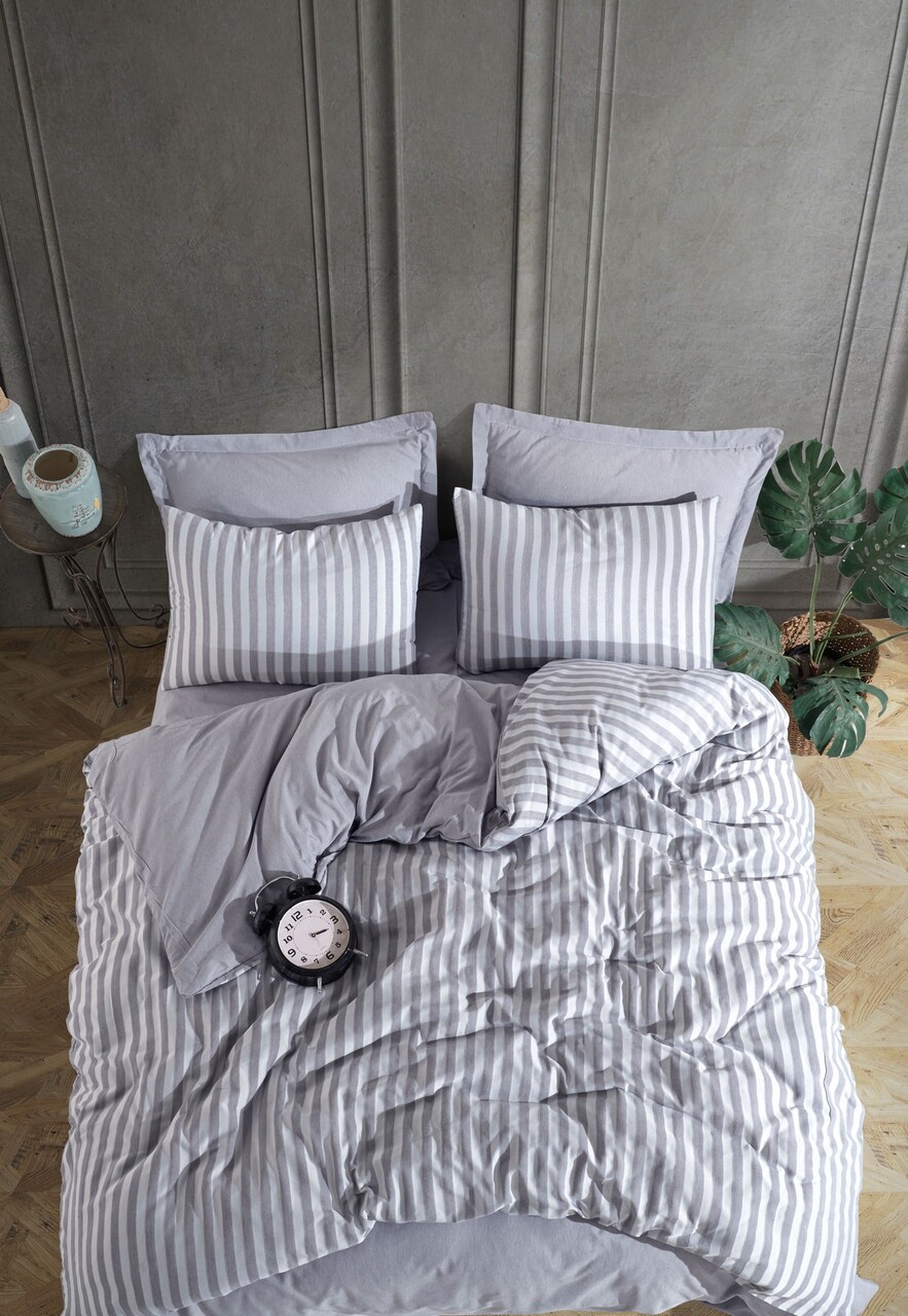 Lenjerie de pat dubla, Road Potlu - Light Grey, EnLora Home, Bumbac;Poliester