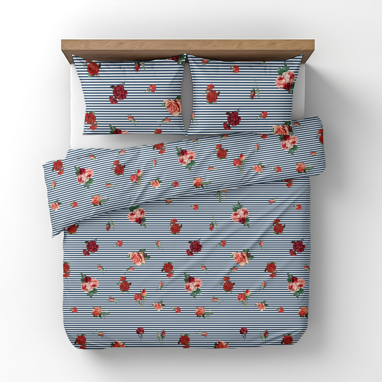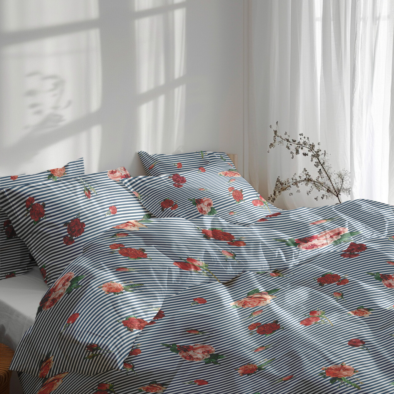 Lenjerie de pat dubla Rose, Heinner Home, 4 piese, 200x220 cm, 100% bumbac, multicolor