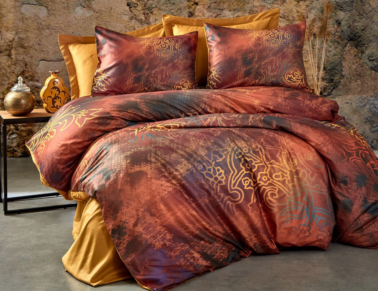 Lenjerie de pat dubla, Rue, Pearl Home, Poliester Satinat
