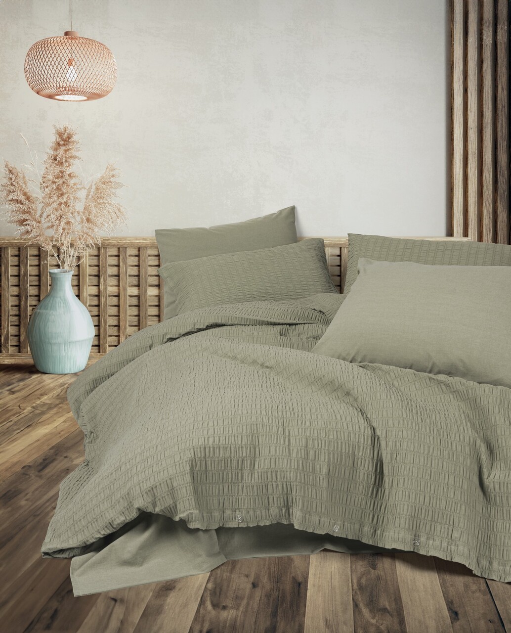 Lenjerie de pat dubla, Sungai - Green, Cotton Box, 60% bumbac/40% poliester