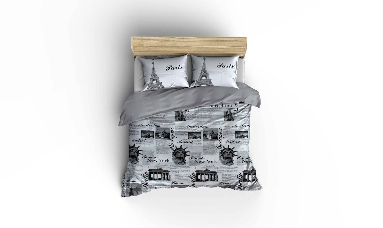 Lenjerie de pat dubla Super King, 3 piese, 220x260 cm, 100% bumbac ranforce, Victoria, City, negru/gri