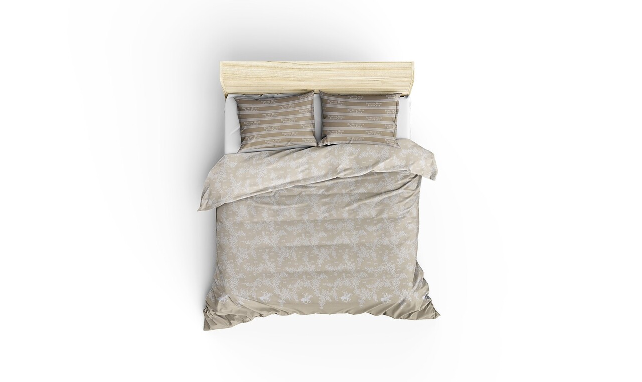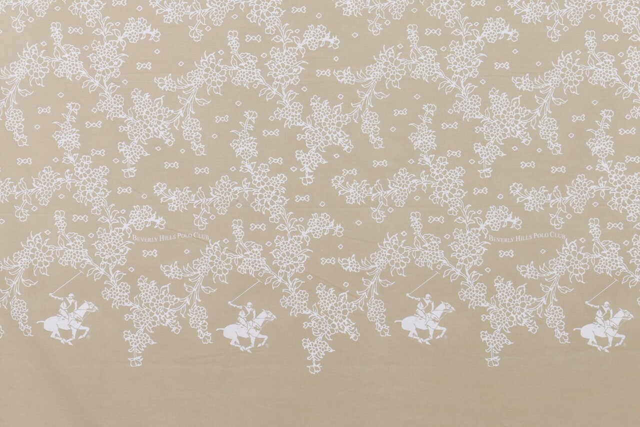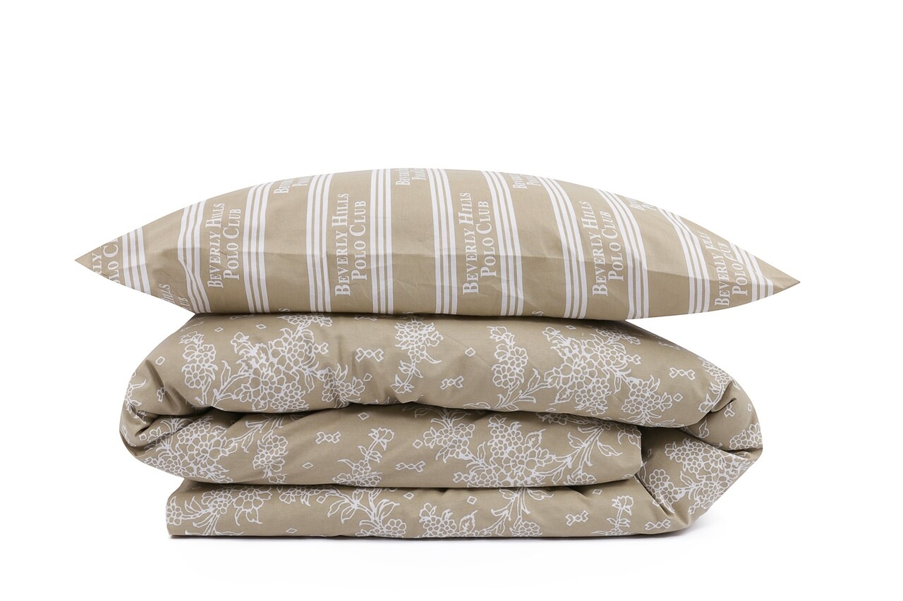 Lenjerie de pat dubla Super King, 3 piese, 220x260 cm, 50x80 cm, 100% bumbac ranforce, Beverly Hills Polo Club, BHPC 013, crem
