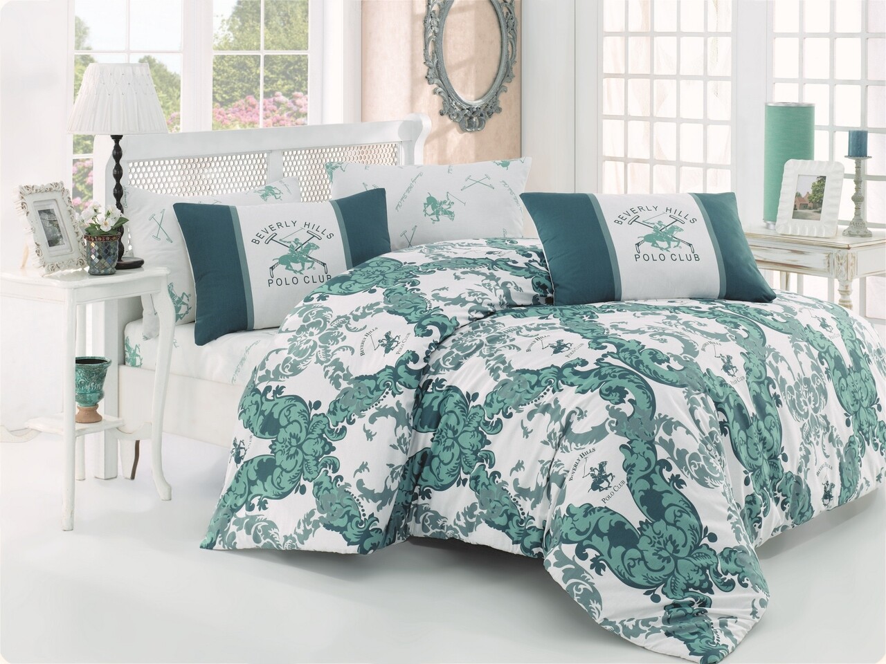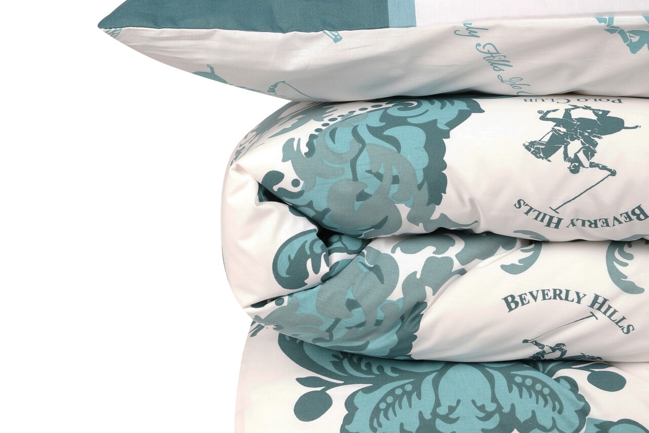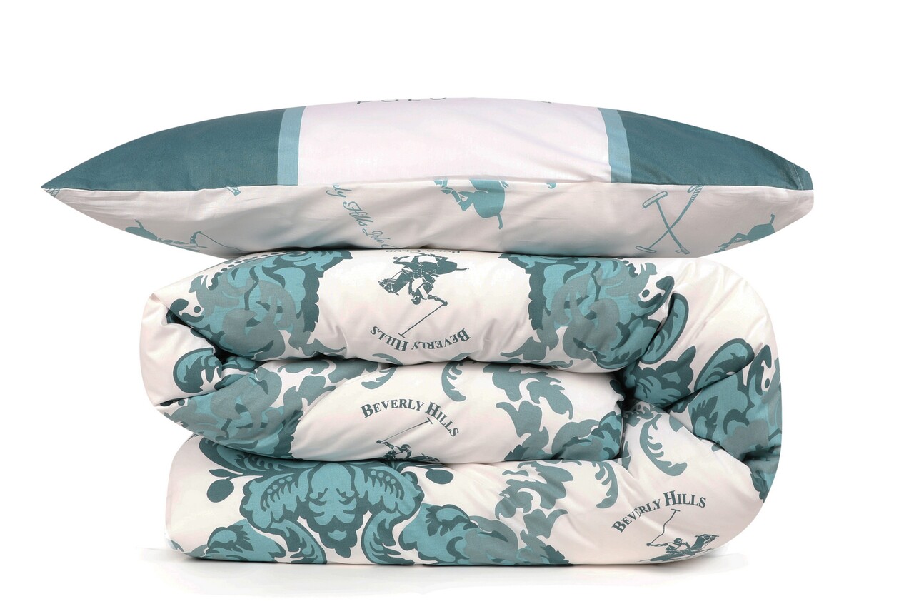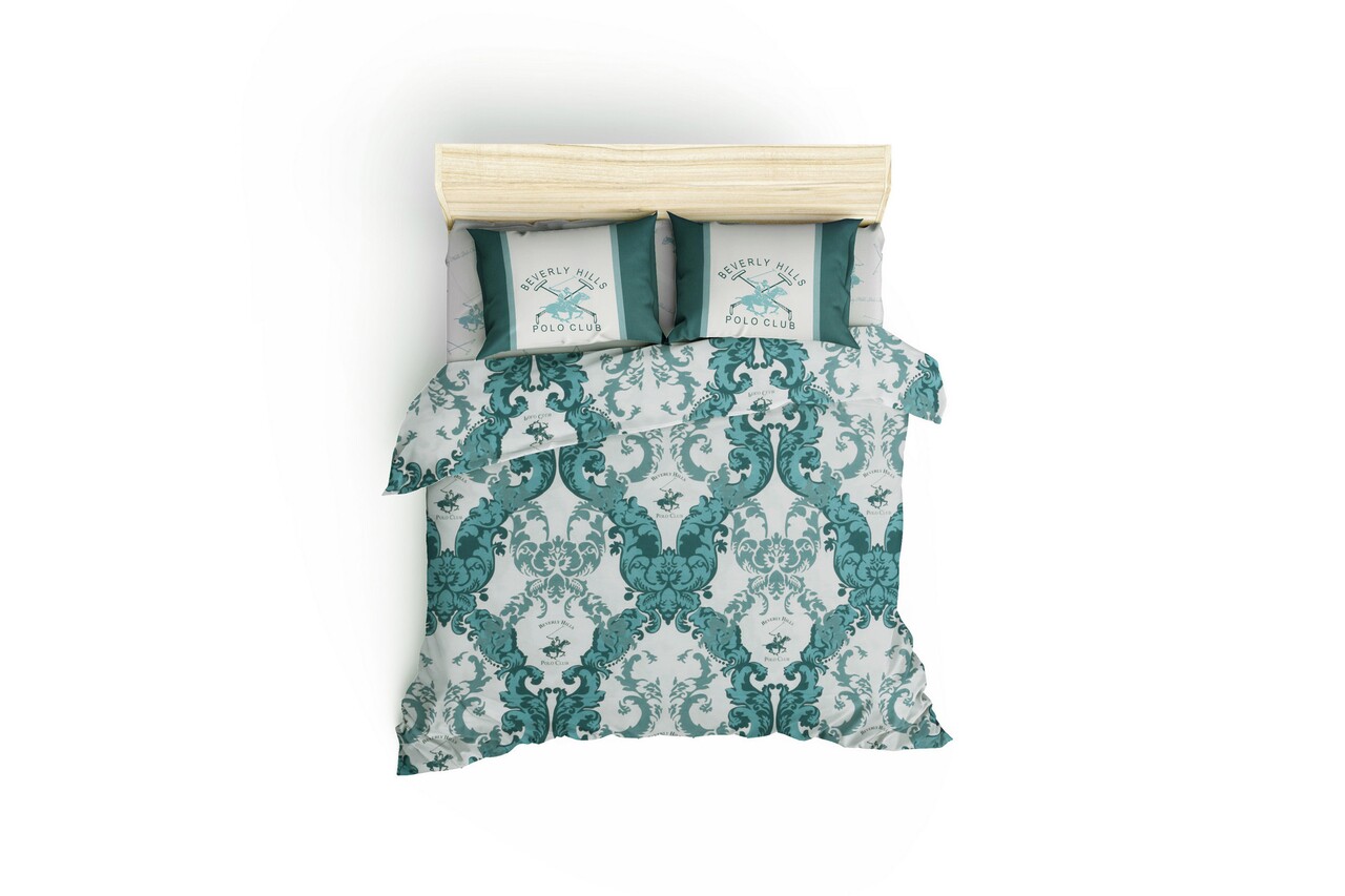 Lenjerie de pat dubla Super King, 3 piese, 220x260 cm, 60x60 cm, 100% bumbac ranforce, Beverly Hills Polo Club, BHPC 024, verde
