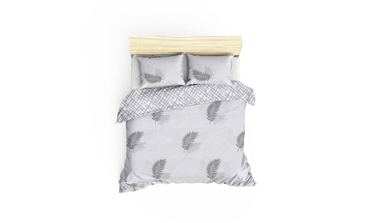 Lenjerie de pat dubla Super King, 3 piese, 220x260 cm, amestec bumbac, Eponj Home, Palma, gri