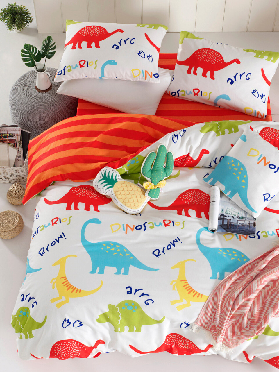 Lenjerie de pat dubla Super King (EU) (IT), 3 piese, Dinazorus - White, Eponj Home, 65% bumbac/35% poliester