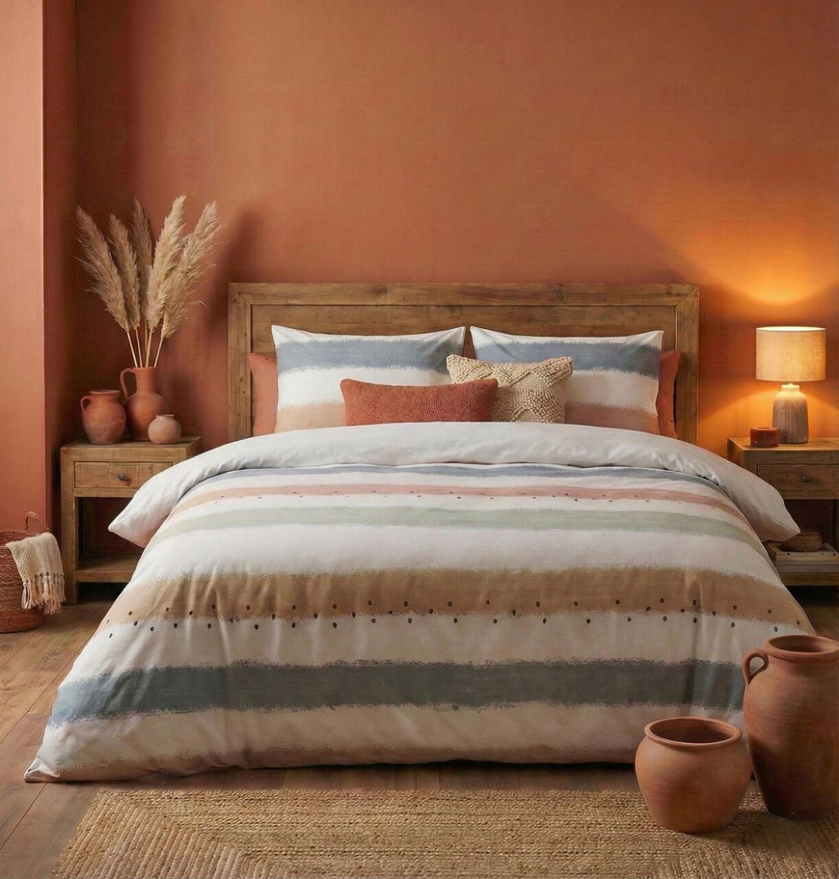 Lenjerie de pat dubla Super King (EU) (IT), 3 piese, L'essentiel Maison, Sunset, Bumbac;Poliester, Roșu / Albastru / Bej / Alb