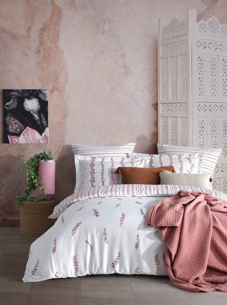 Lenjerie de pat dubla Super King (EU) (IT), 3 piese, L'essentiel Maison, Kilyos, Pulbere / Alb