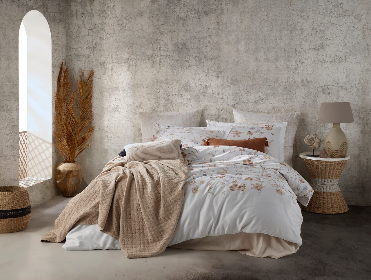 Lenjerie de pat dubla Super King (EU) (IT), 3 piese, L'essentiel Maison, Rosebella, Alb / Bej